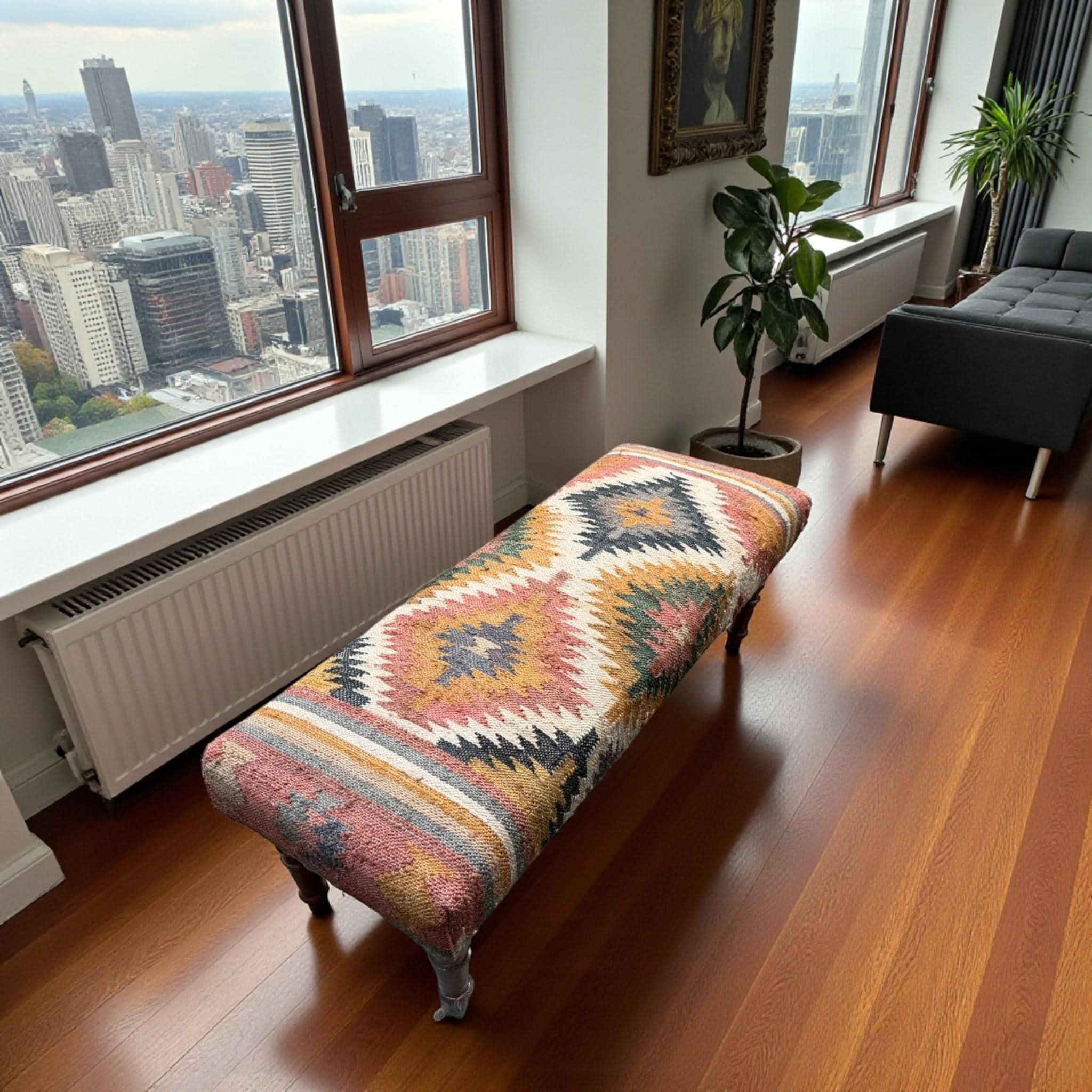 Jute Kilim Bench, Kilim Ottoman, Sitting Bench, Handmade furniture,...