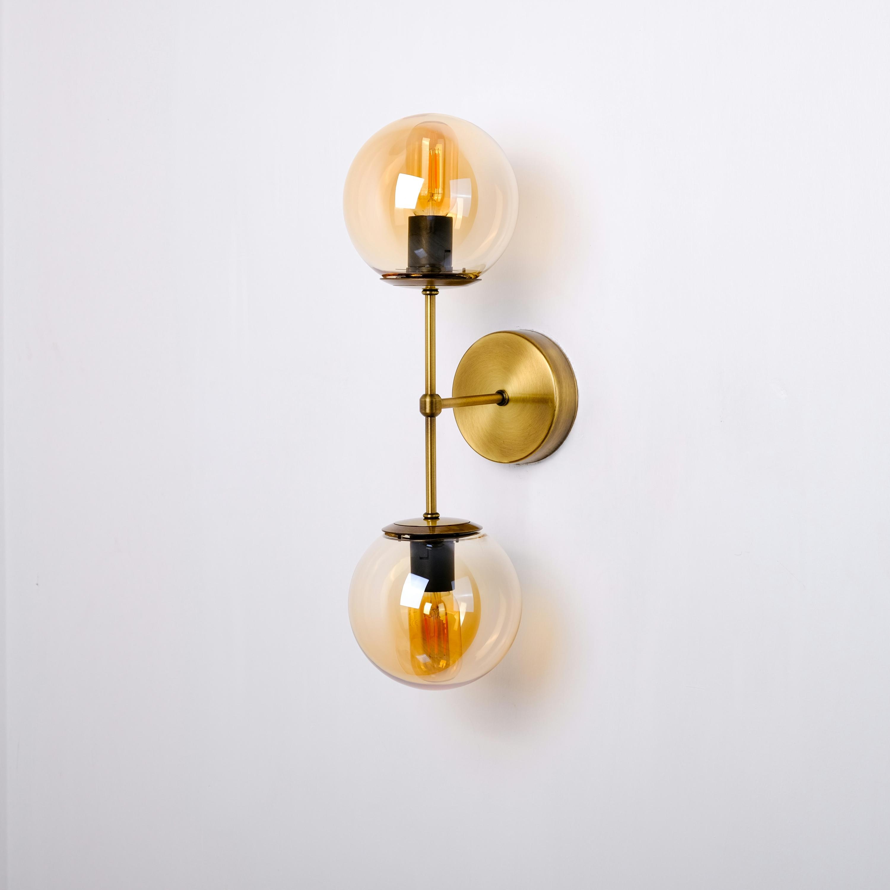 Double Glass Globe Sconce, Retro Glass Wall Lamp, Vintage Brass Wal...
