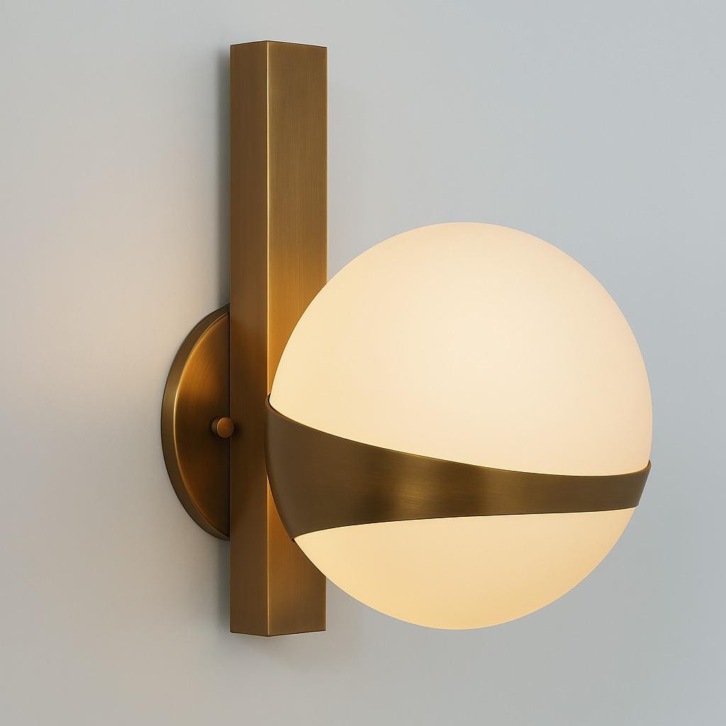 Modern Brass Wall Sconce Glass Globe Mid Century Wall Light Gold Ba...