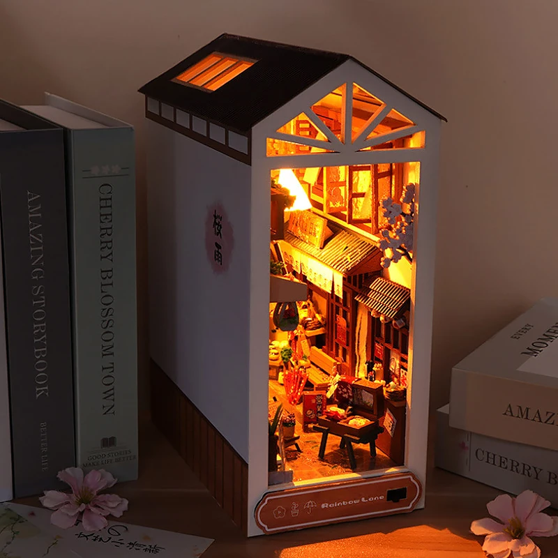 DIY Book Nook Kit Shelf Insert Miniature Doll houses 3D Puzzle Wood...