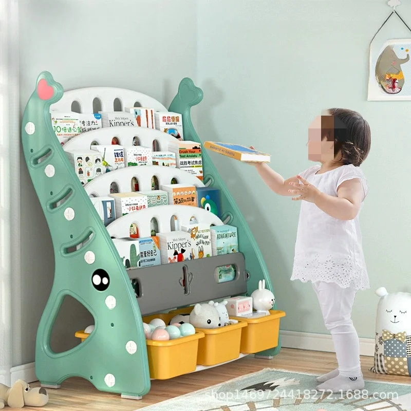Children's Bookshelf Baby Toy Storage Shelf Kindergarten Book Shelf Plastic Cartoon Picture Books Si...