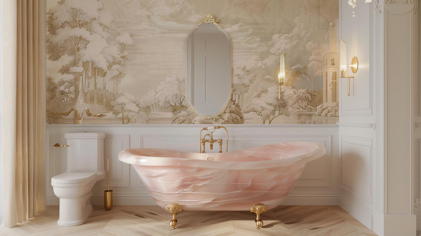 Natural Pink Onyx Bathtub - Handcrafted Luxury Freestanding Stone S...