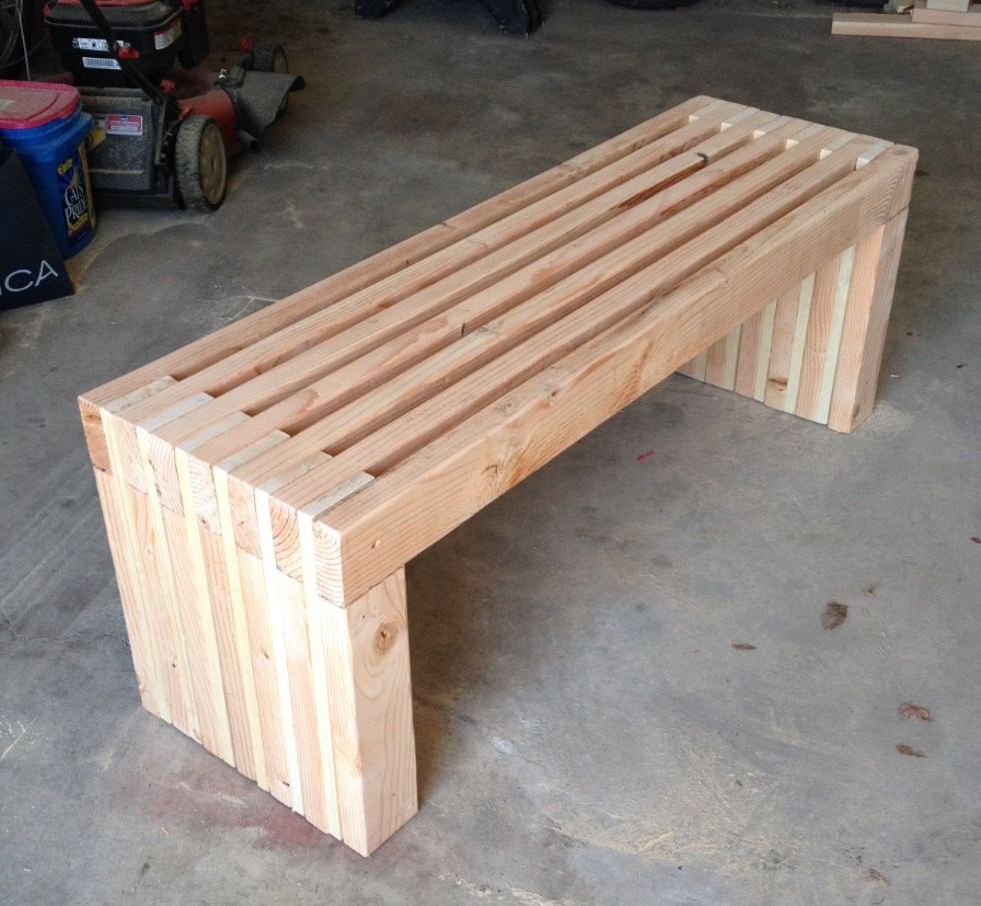 Modern Easy Slatted Bench, Simple Outdoor Wood Bench, Garden Furnit...