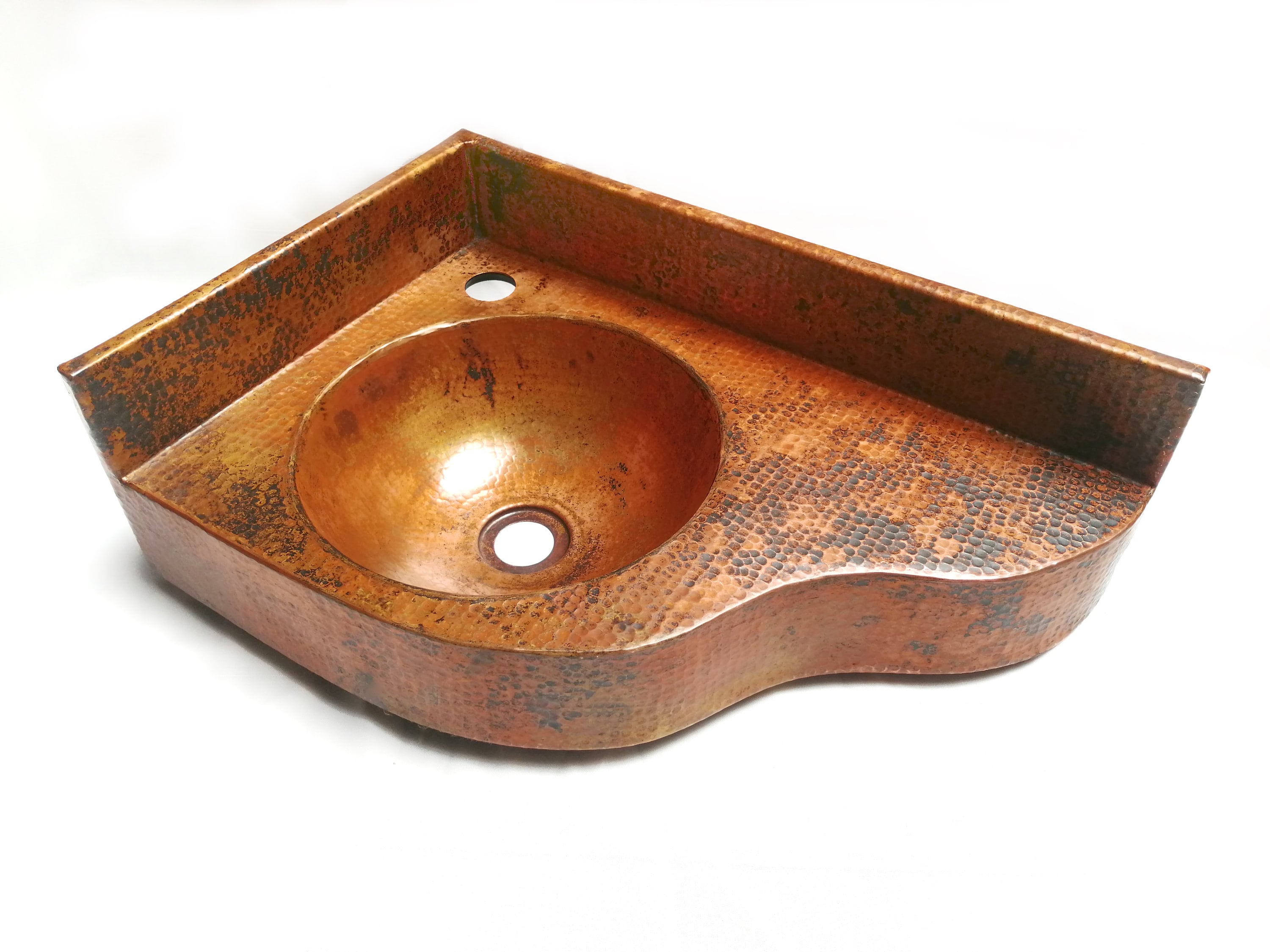 "Corner Vanity Wall Mounted with integrated 10\" Round Sink and 3\" Apron in Natural ...