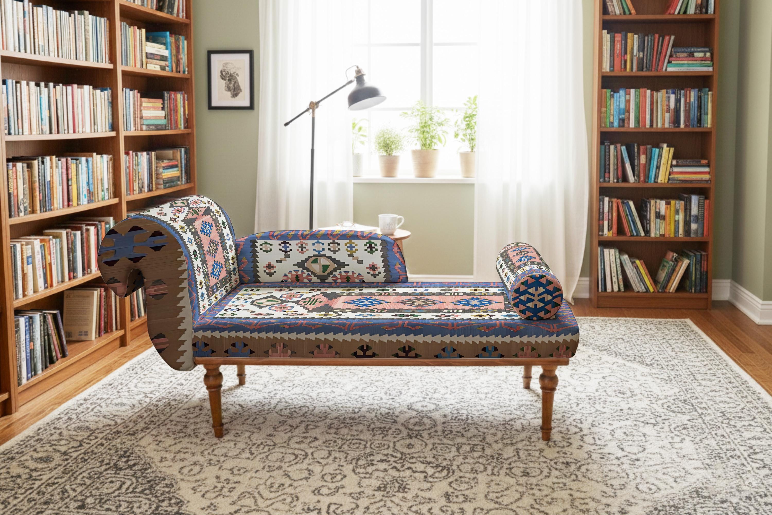 Upholstered chaise lounge, Bohemian sofa, Storage loveseat, Window ...