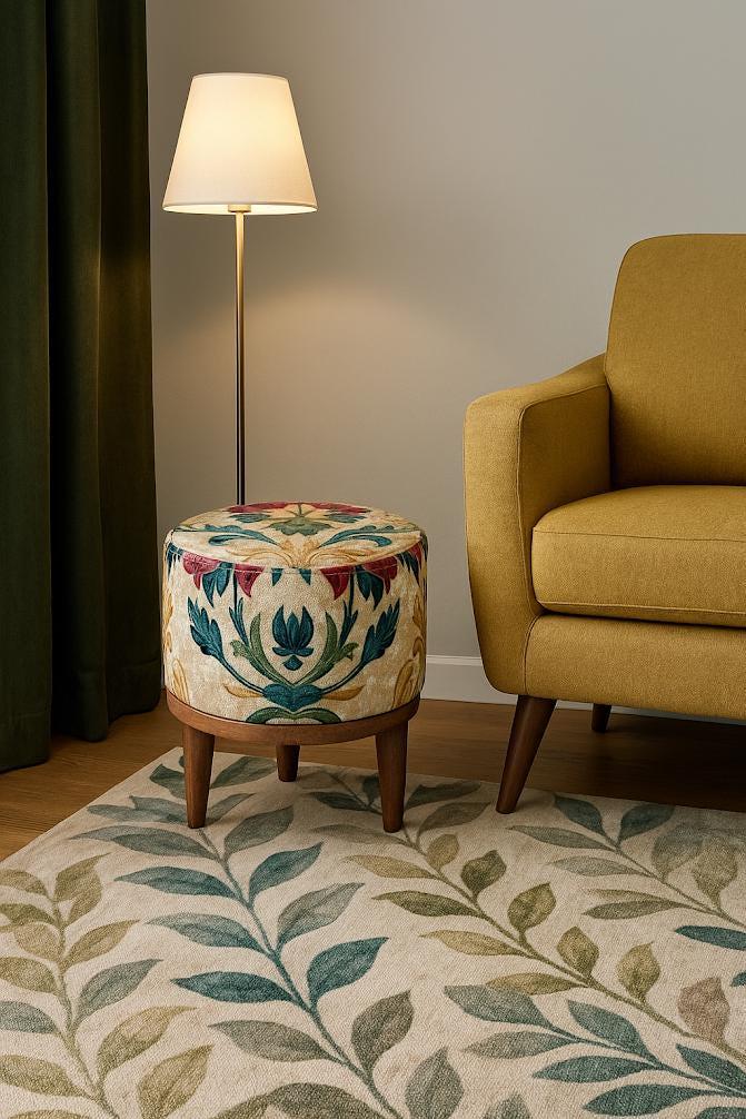 Round Ottoman Bench - Stylish Wood Frame with Printed Rug Seat
