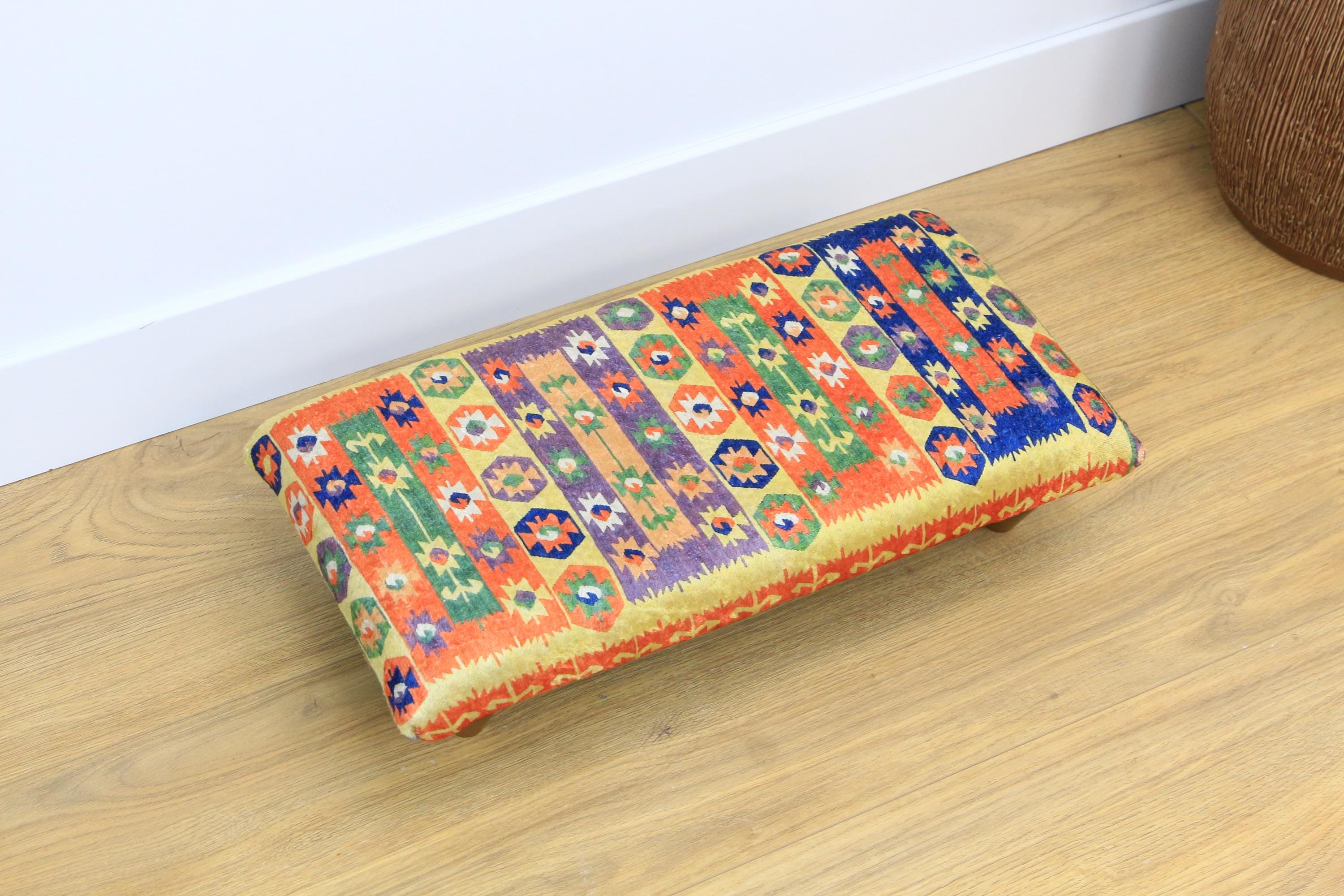 Kilim Rug Bench, Ottoman Upholstered Bench, Handmade Furniture, Foo...
