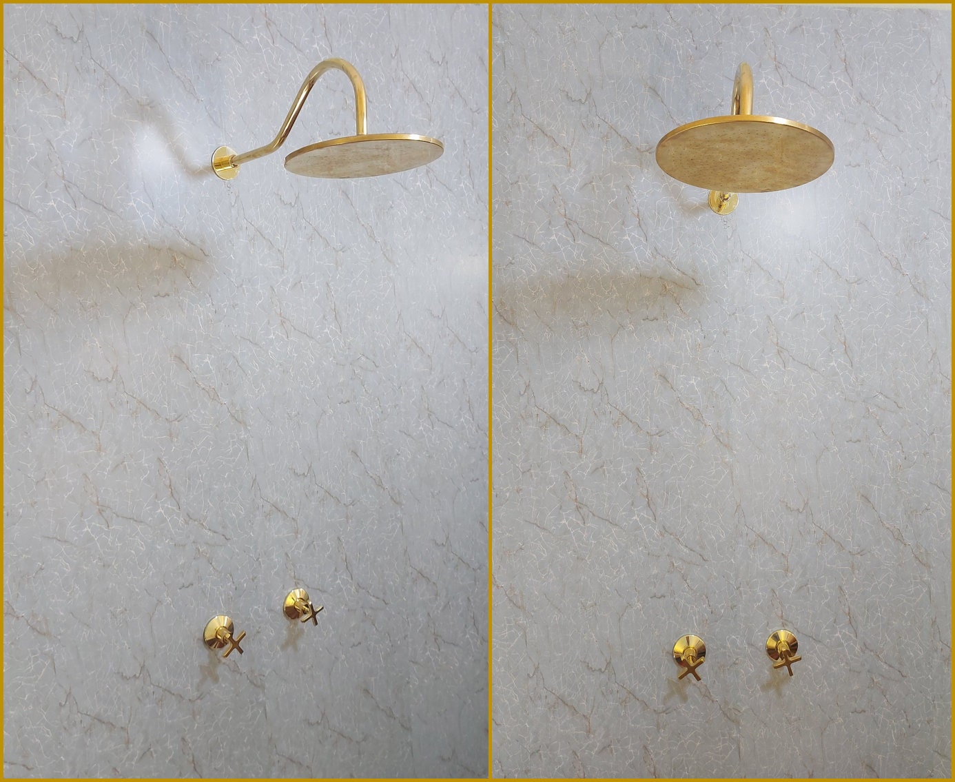 • Unlacquered Brass Wall Mounted Shower Faucet Set With Arc Shower Ar...