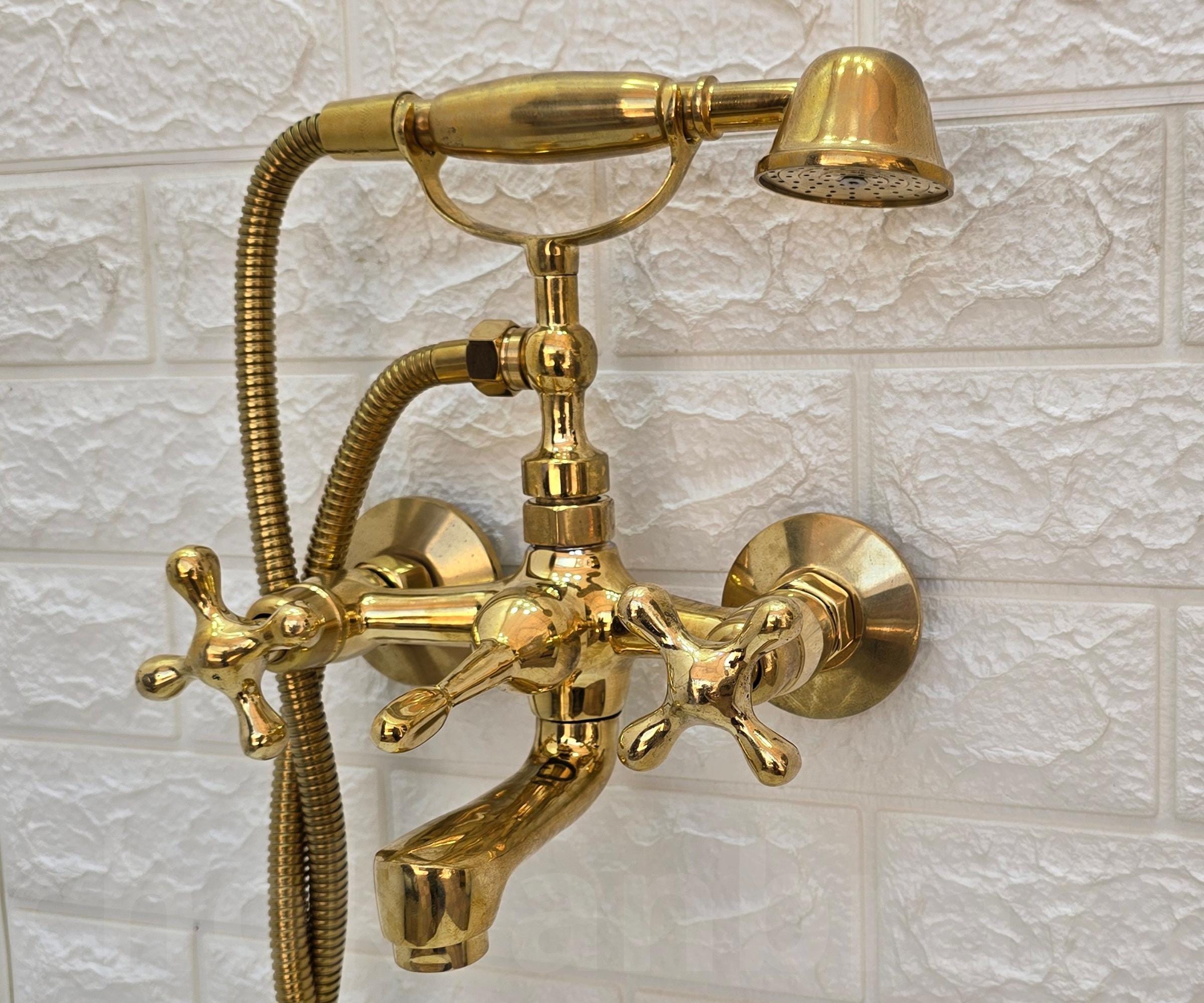 Unlacquered Brass Wall Mount Tub Filler, Bathtub Faucet, Handheld Shower Complete your bathroom with...