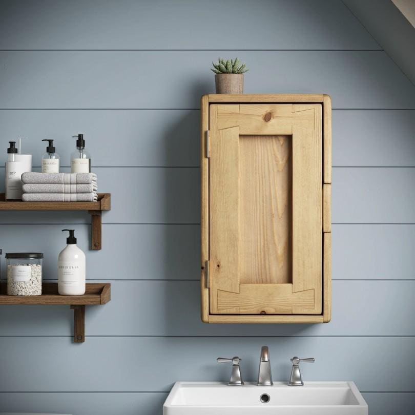 Slim cottage farmhouse style wooden bathroom medicine cabinet measures 50 cm height X 30 cm width an...