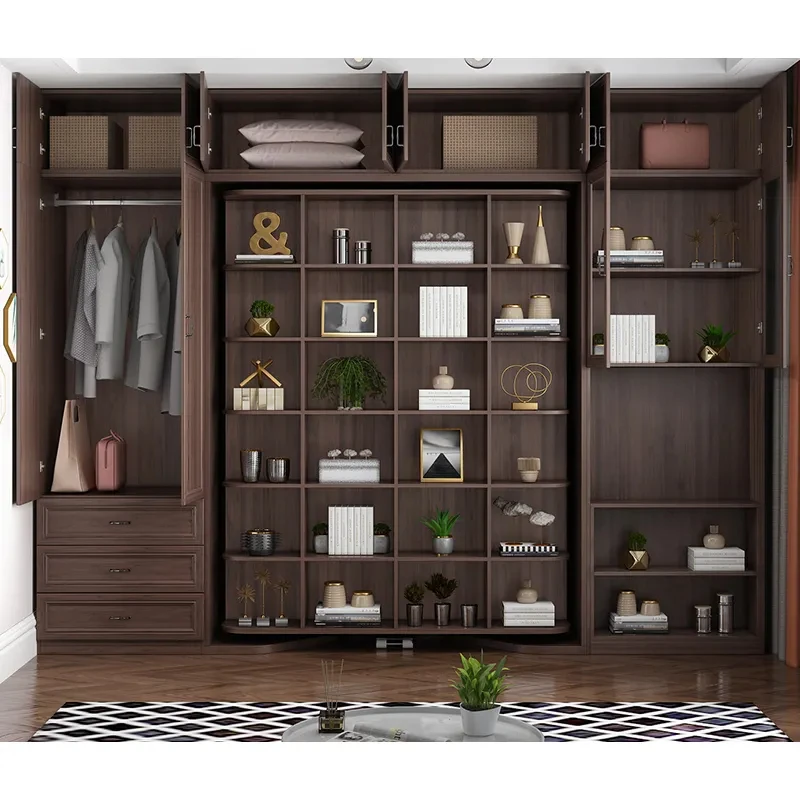 -Multifunctional Rotating Hidden Wall Bed Folding Rotator Beds Bookcase Murphy Bed with Wardrobe wit...
