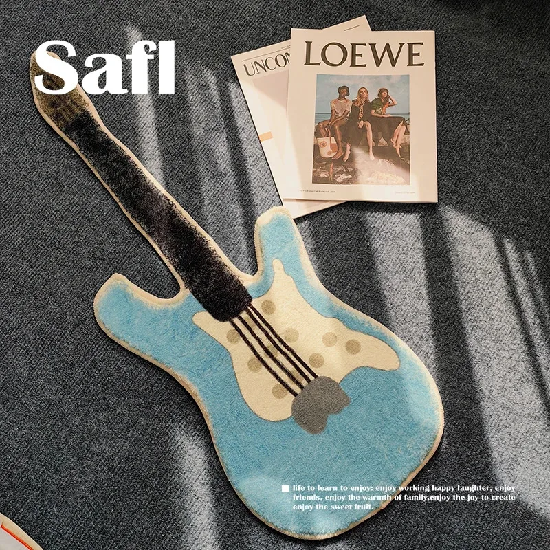 VIKAMA Creative Children'S Room Guitar Shaped Rug Plush Soft Bedside Rug For Bedrooms Living Room De...
