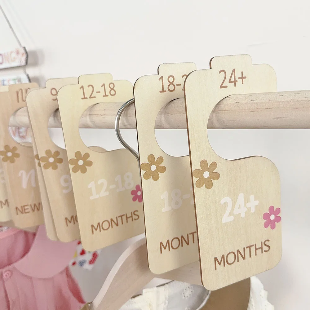 8PCS Baby Closet Dividers Wooden Baby Clothes Hangers Size Organizers Nursery Decorations for Girls ...