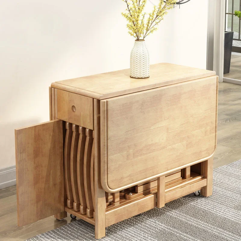 Solid wood household small apartment retractable folding rectangular modern simple table and chair c...