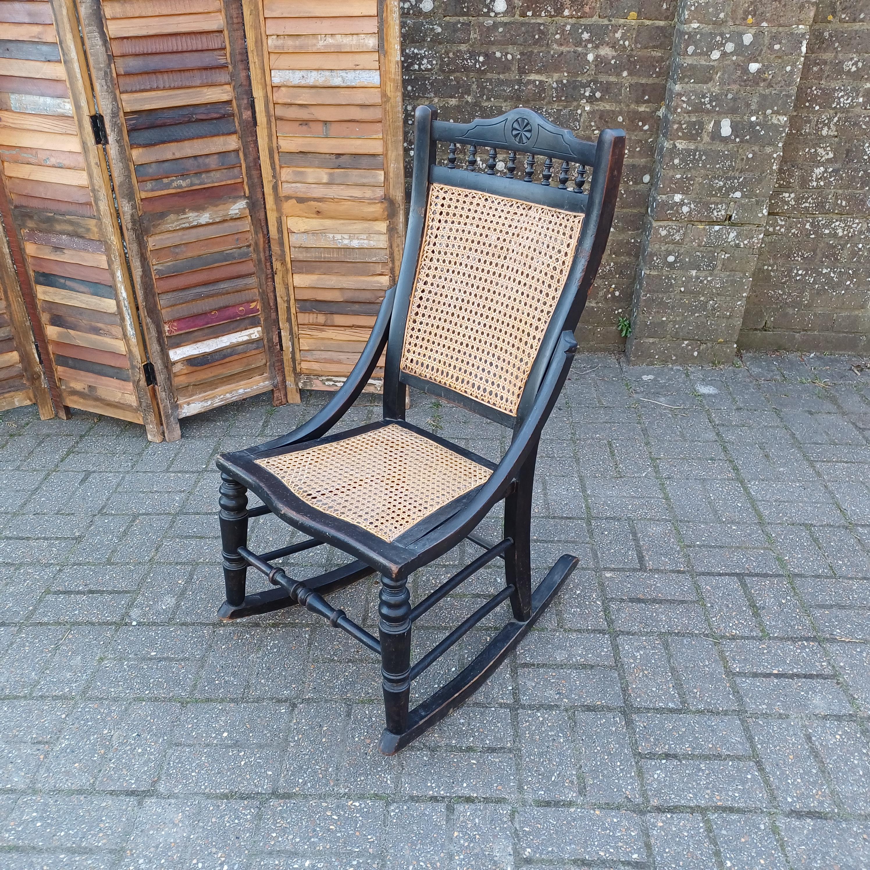 Ebonised New Cane and Wood Rocking Chair vintage Country Farmhouse ...