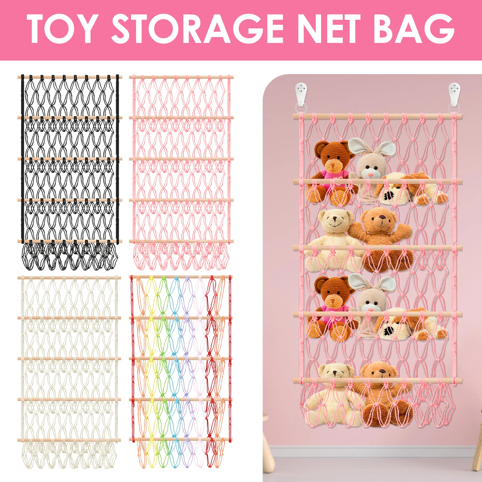 Kids Plush Toy Storage Hammock Wall Mounted for Bedroom Decor with 3 Hooks