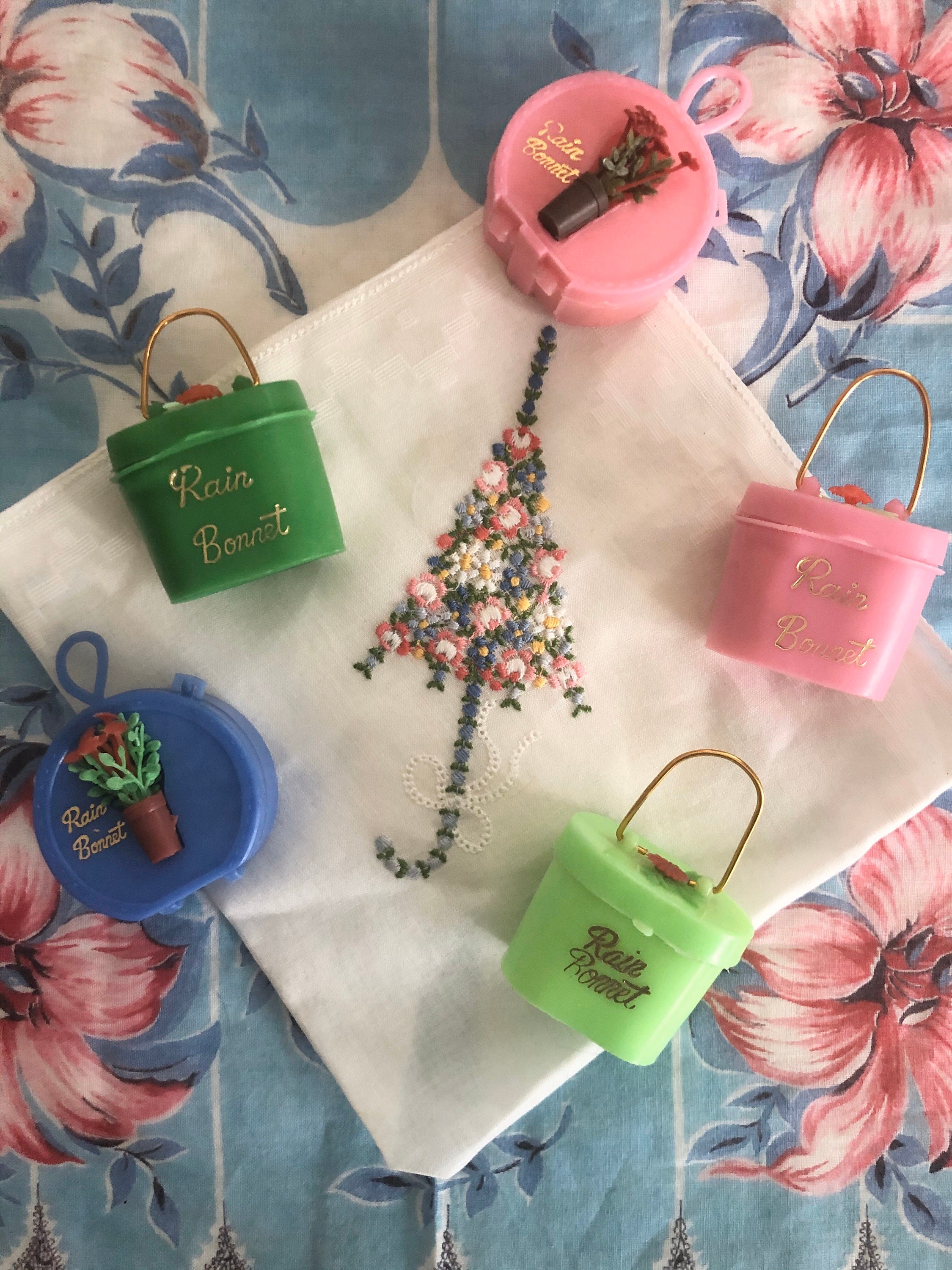 Vintage pink travel rain bonnet 1pc/plastic Hong Kong rain bonnet/p...