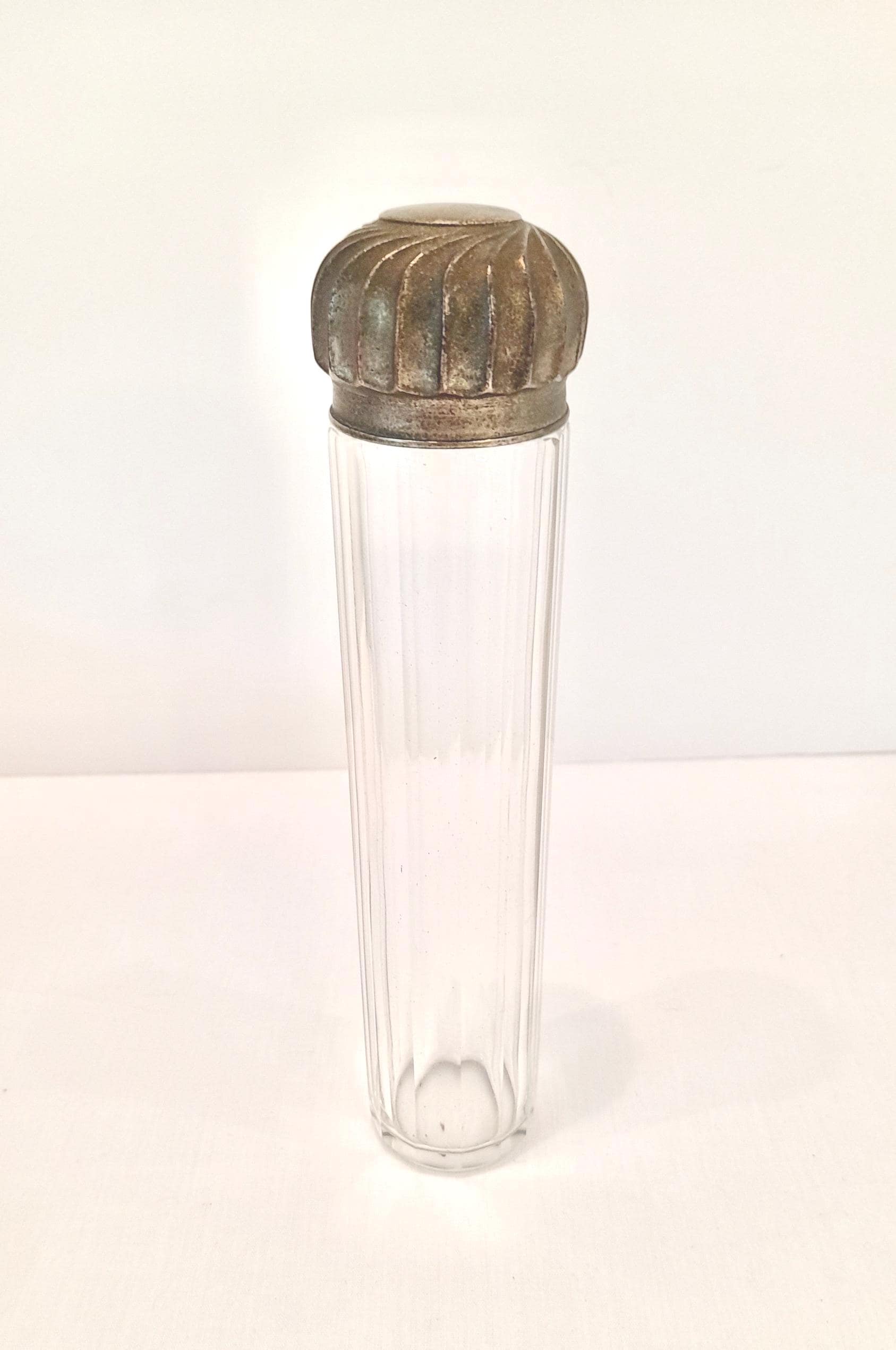 A lovely Victorian glass toothbrush holder with metal lid. The lid has a lovely swirl pattern and fi...