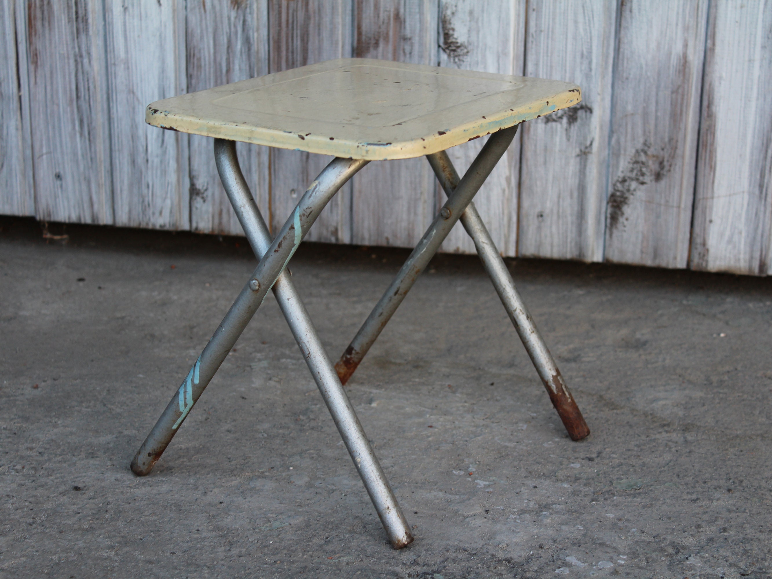• Vintage metal chair, soviet folding stool, Old metal chair, Small m...