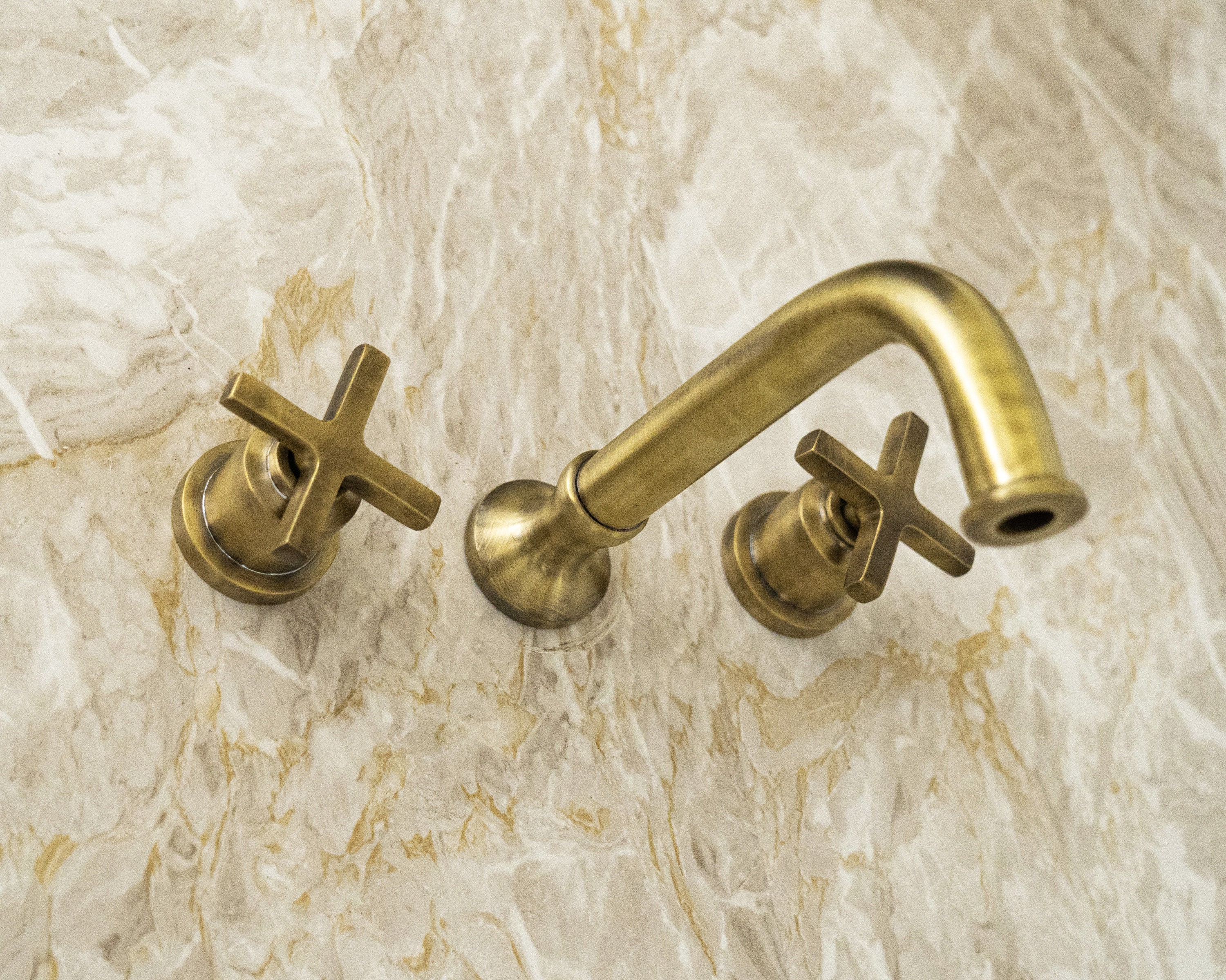 Wall Mounted Sink Faucet, Wall Mount Bathroom Faucet In Antique Bra...