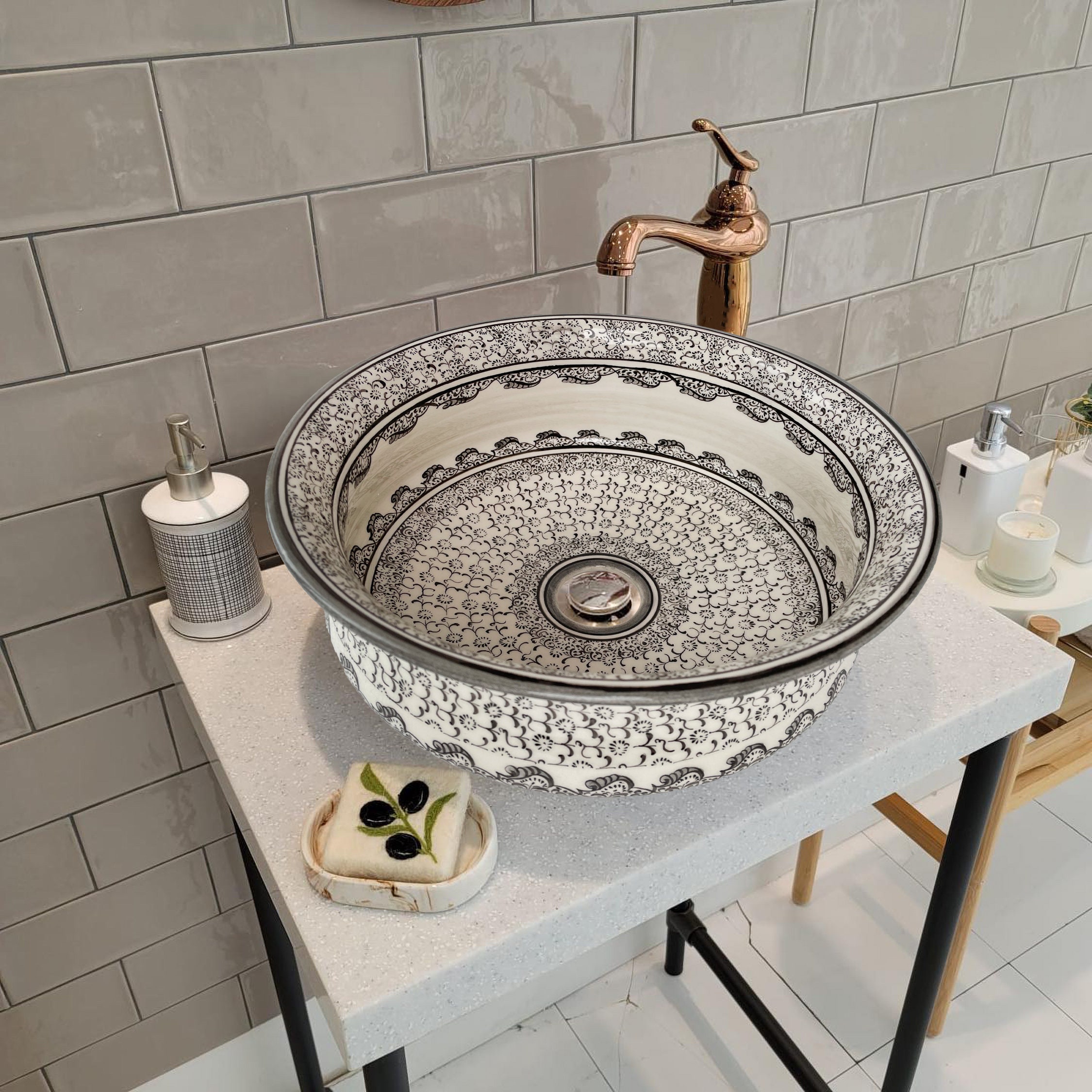 25CM DHL Shipping-Moroccan Round washbasin, ceramic handmad sink,ha...