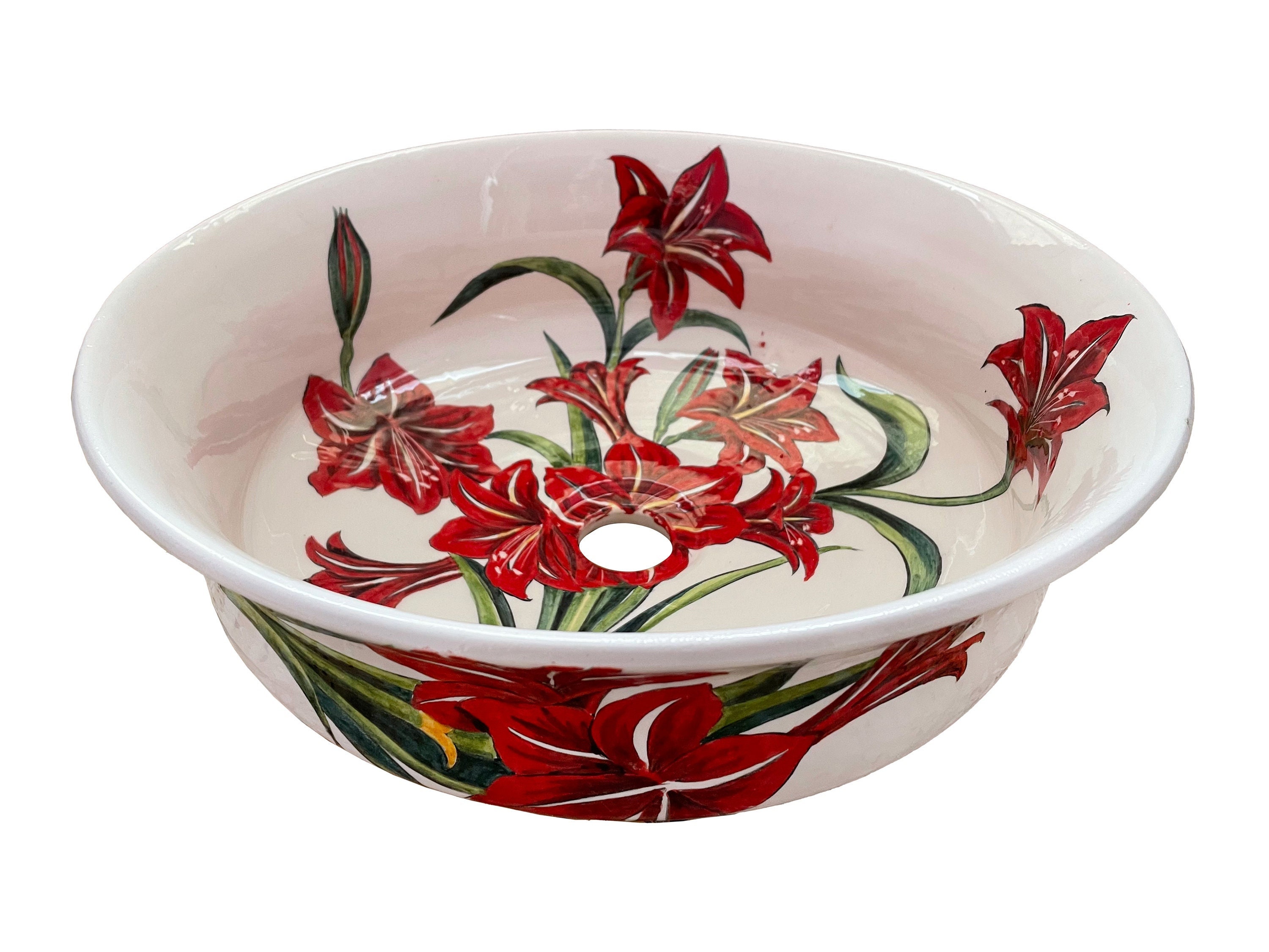 "Handmade Red and Blue Tulips pattern Sink, the ZEEM My Home Series features contemporary and t...