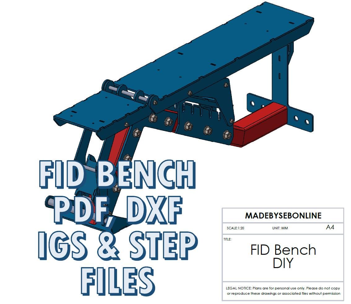 DIY FID Weight Bench Plans, CNC Laser Cut Ready (pdf, dxf, step fil...