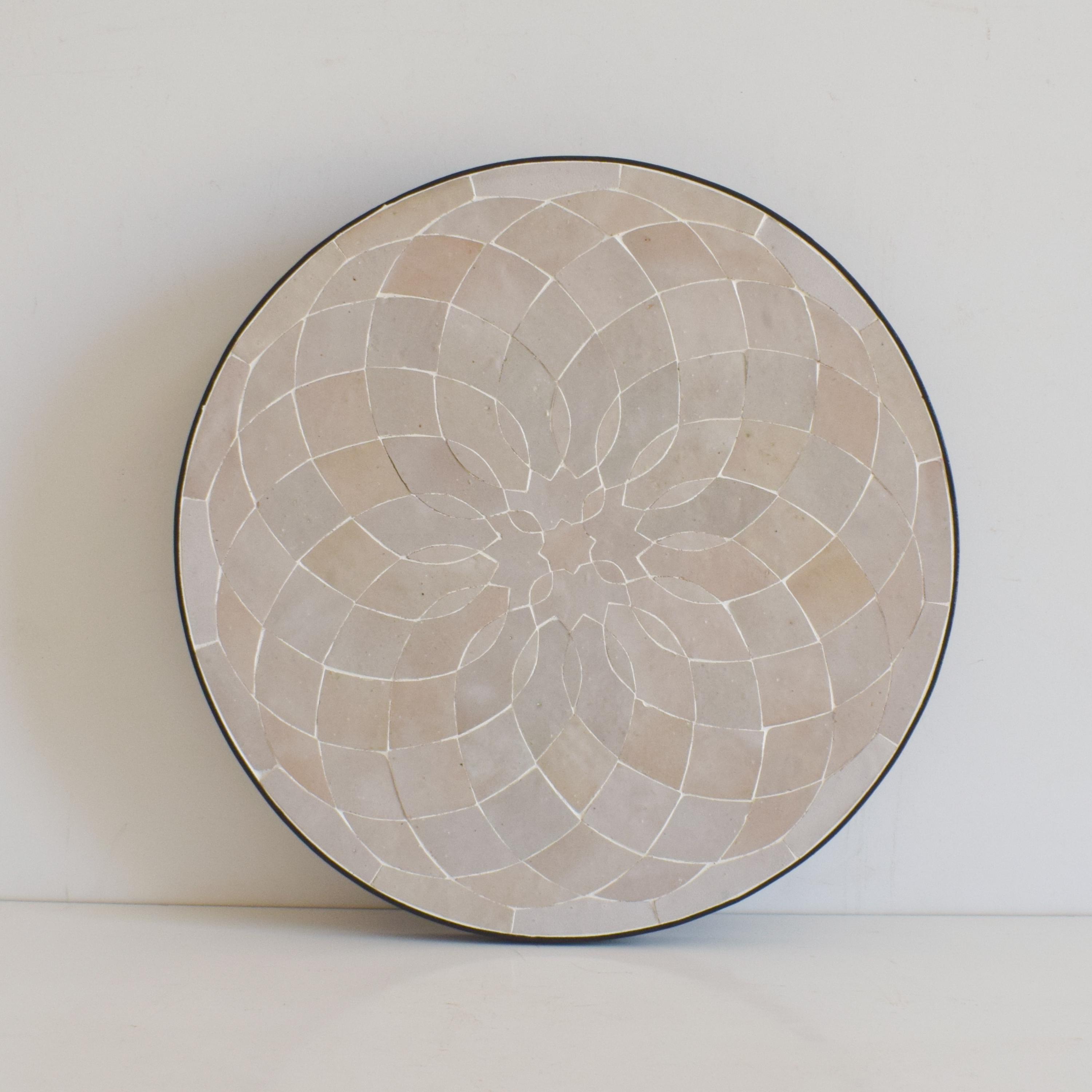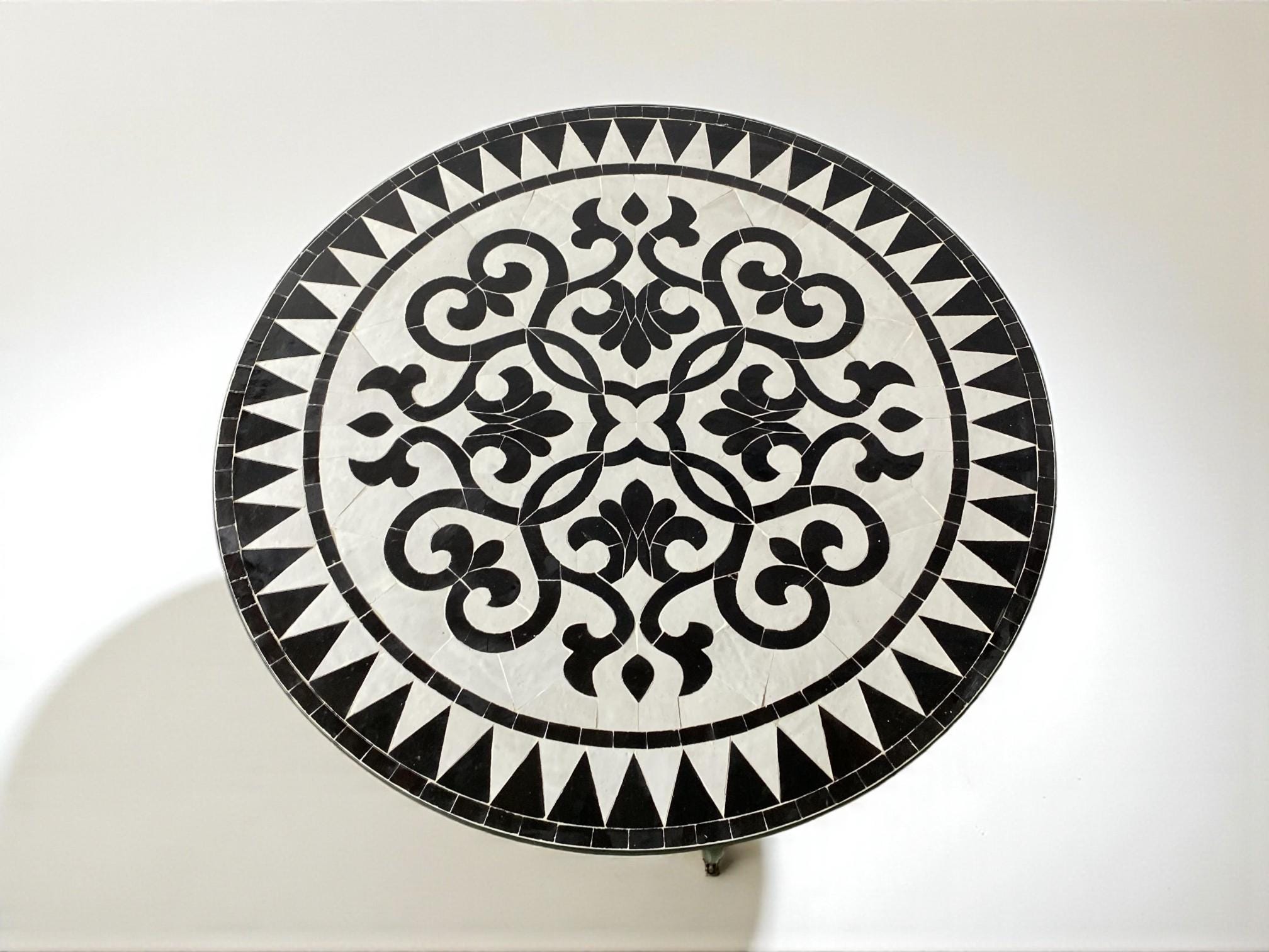 Moroccan Mosaic Table - Black and white Handmade Zellige Round Pati...
