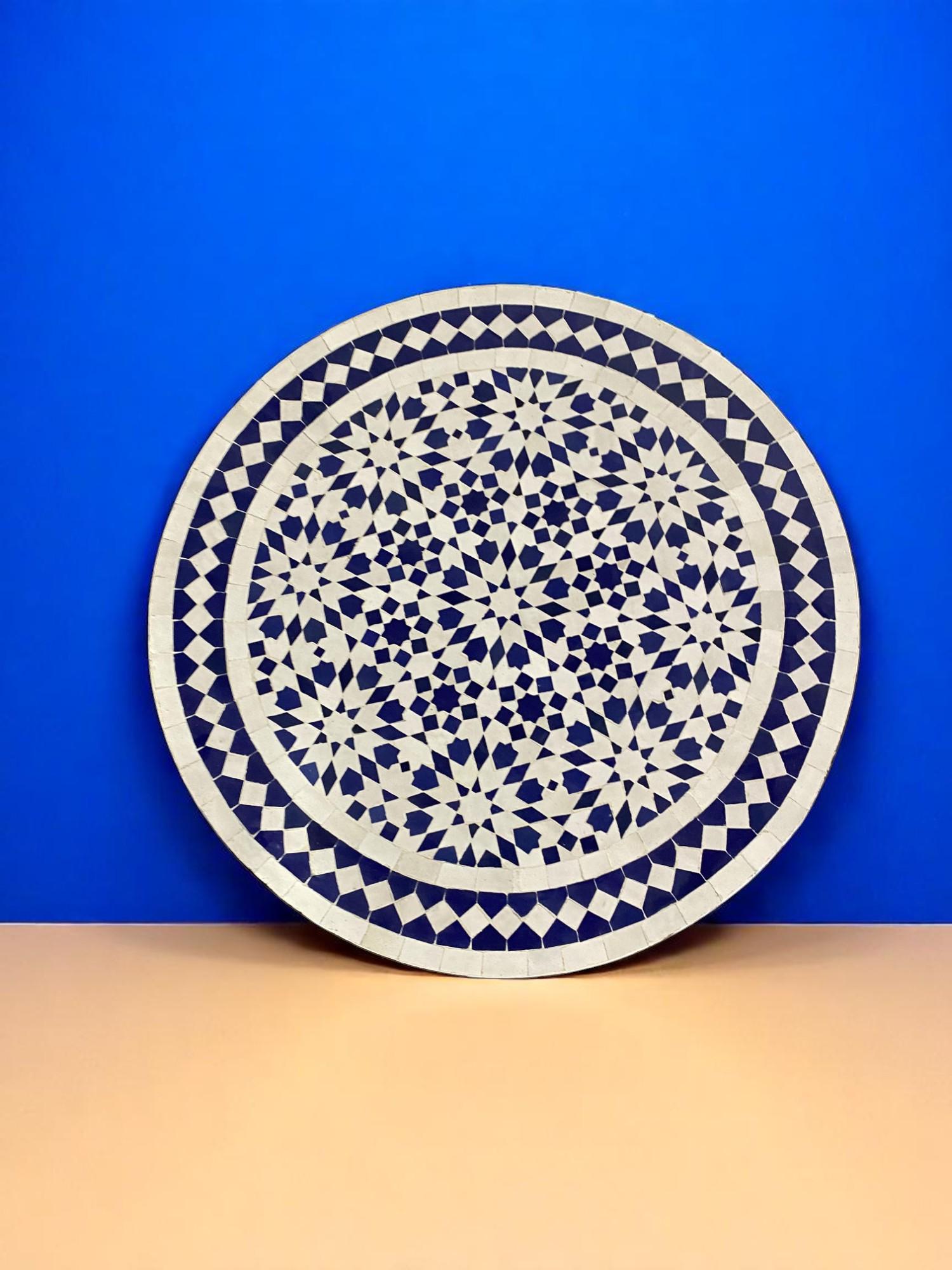 Blue and White Handmade Moroccan Mosaic Table - Colorful Zellij Rou...