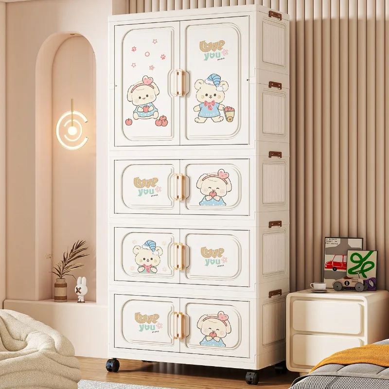 Cartoon Kids Wardrobe Foldable Plastic Clothes Storage Cabinet Nursery Organizer Space Saving Baby C...