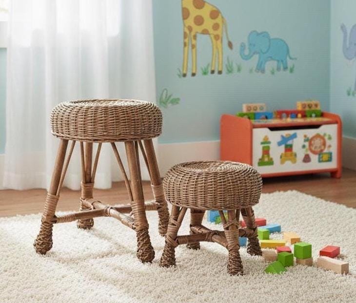 Wicker stool, rattan stool, kids chair, baby chair, kids wicker cha...