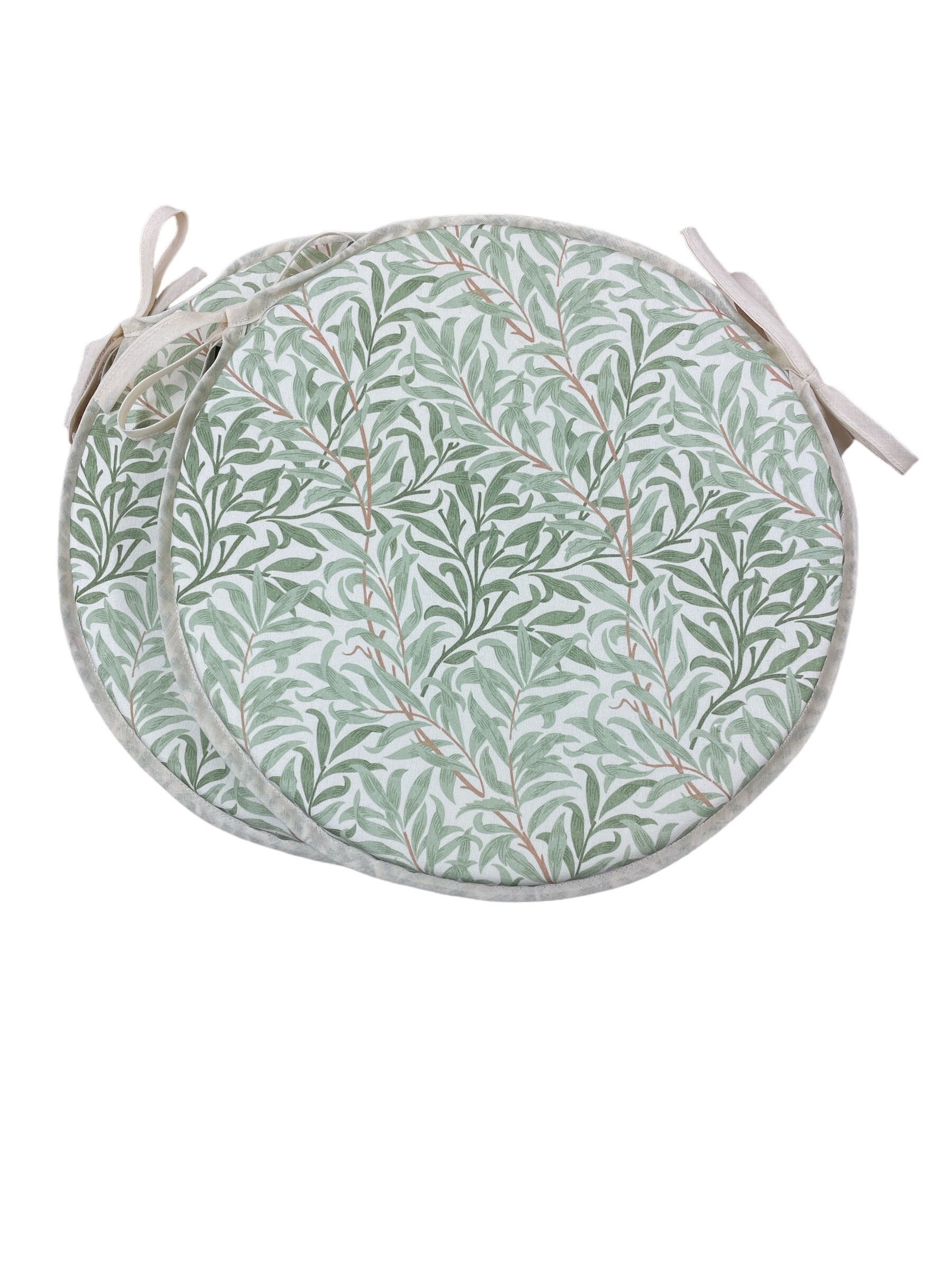 "Set Of 2 William Morris - Willow Bough Sage 100% Cotton Bistro/Round Tie-On seat pads for gard...