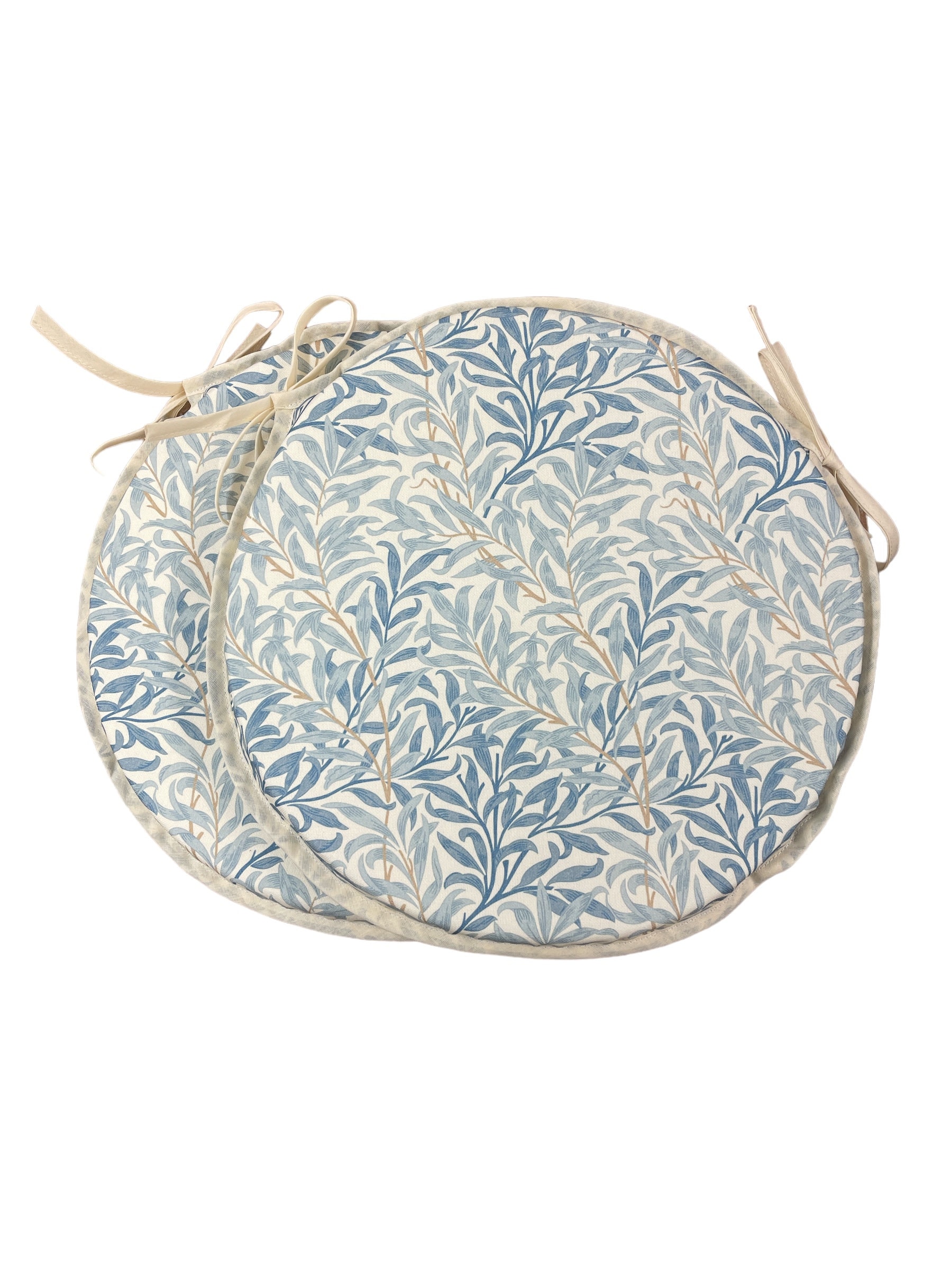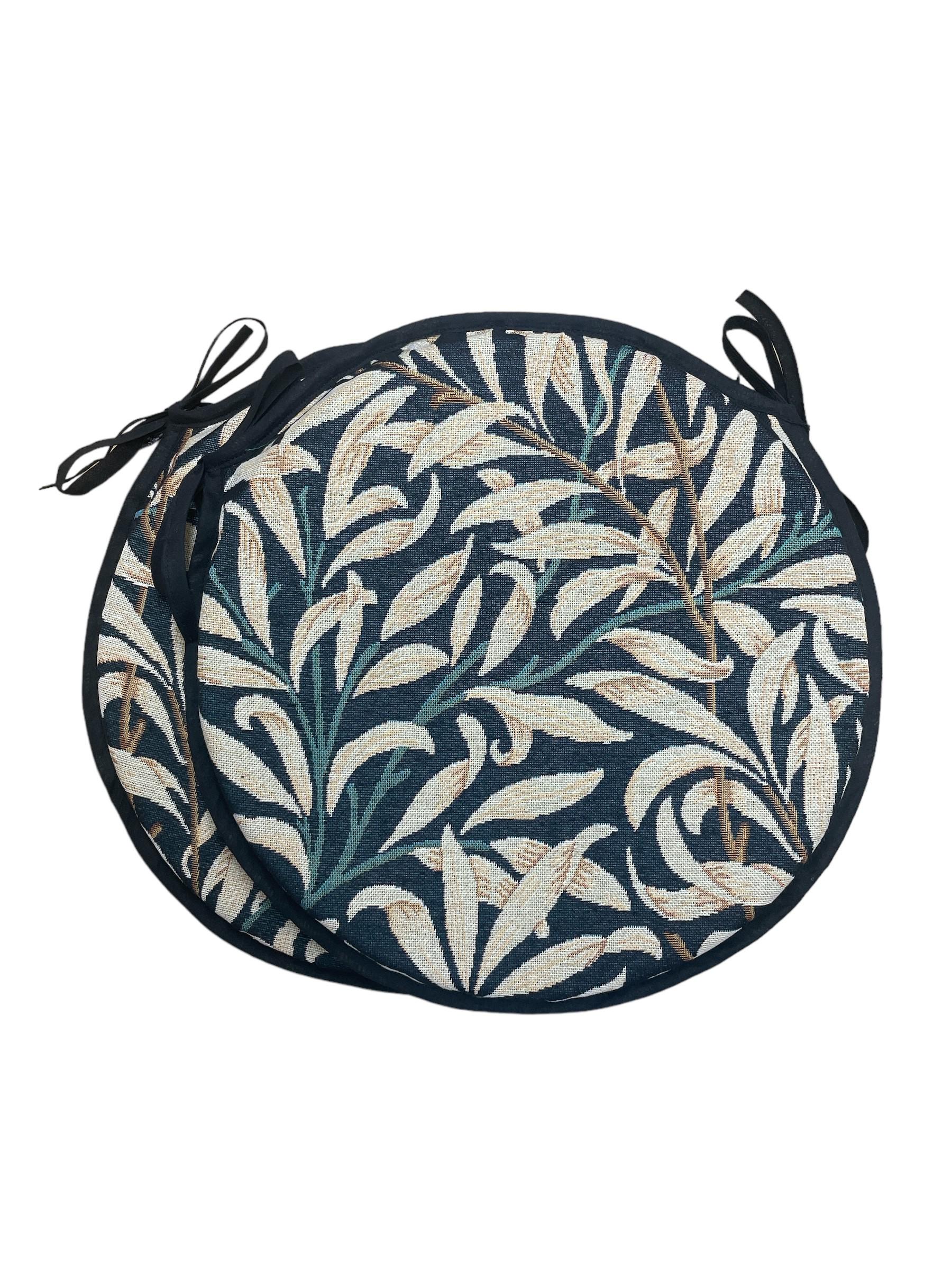 "Set Of 2 William Morris - Willow Bough Azure 100% Cotton Bistro/Round Tie-On seat pads for gar...