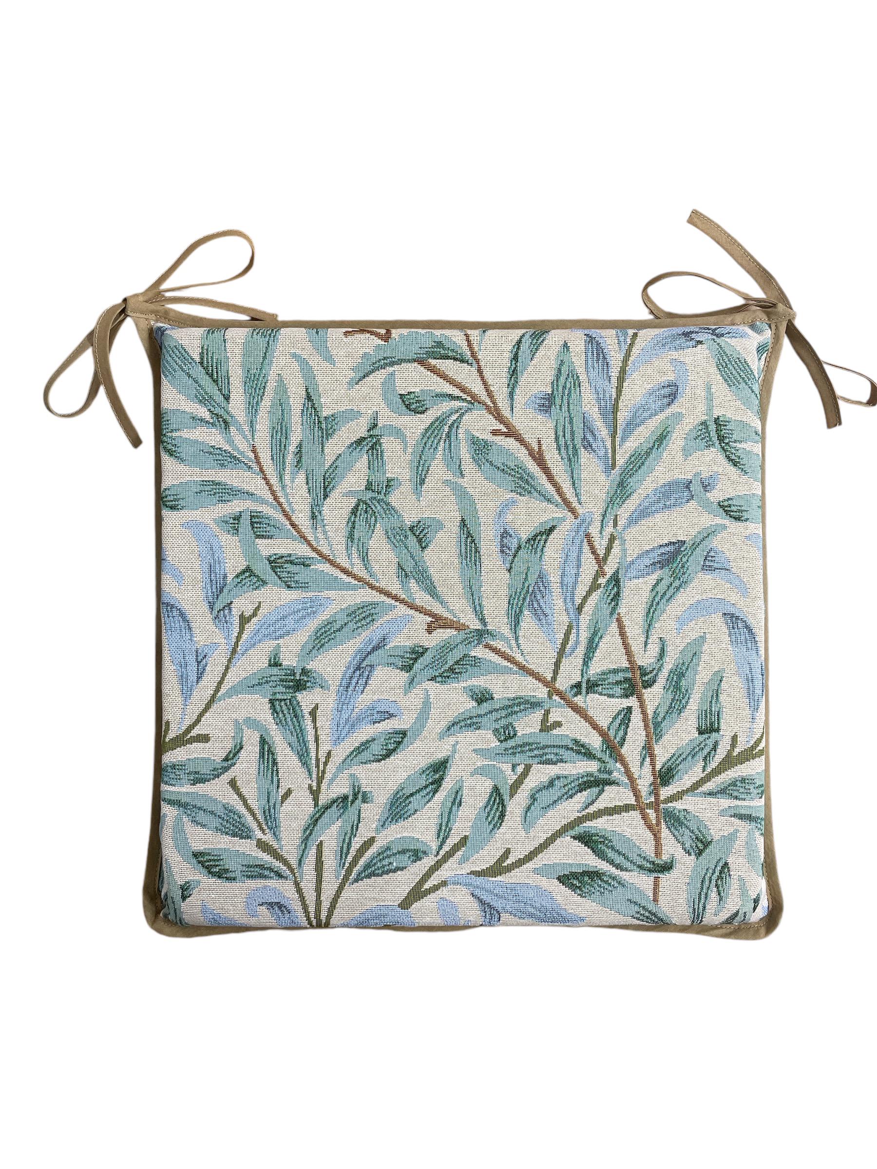 "William Morris - Willow Bough Seaspray Tapestry Square Tie-On Seat Pad Select your size from t...
