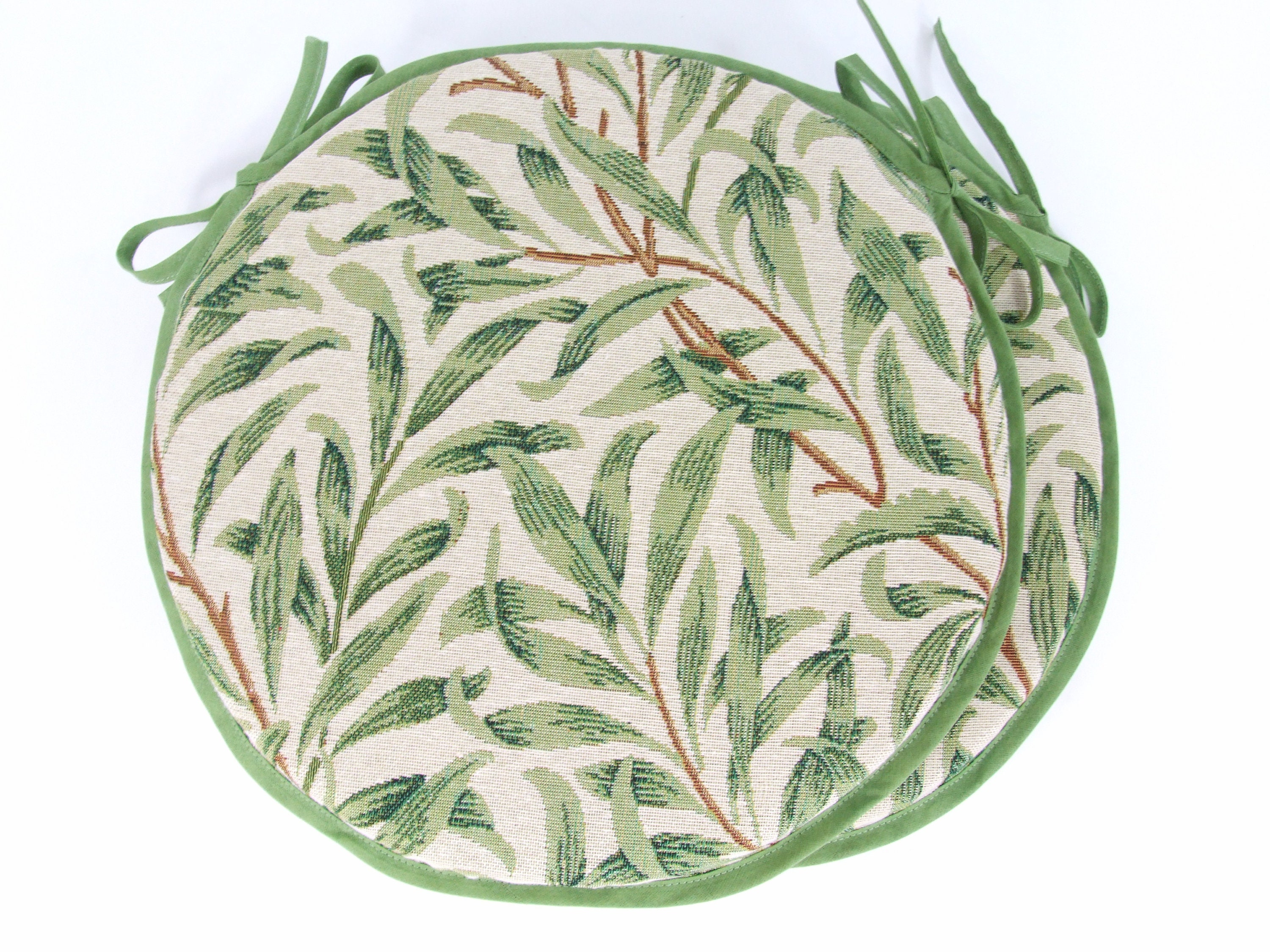 "Set Of 2 William Morris - Willow Bough Sage Tapestry Bistro/Round Tie-On seat pads for garden/...