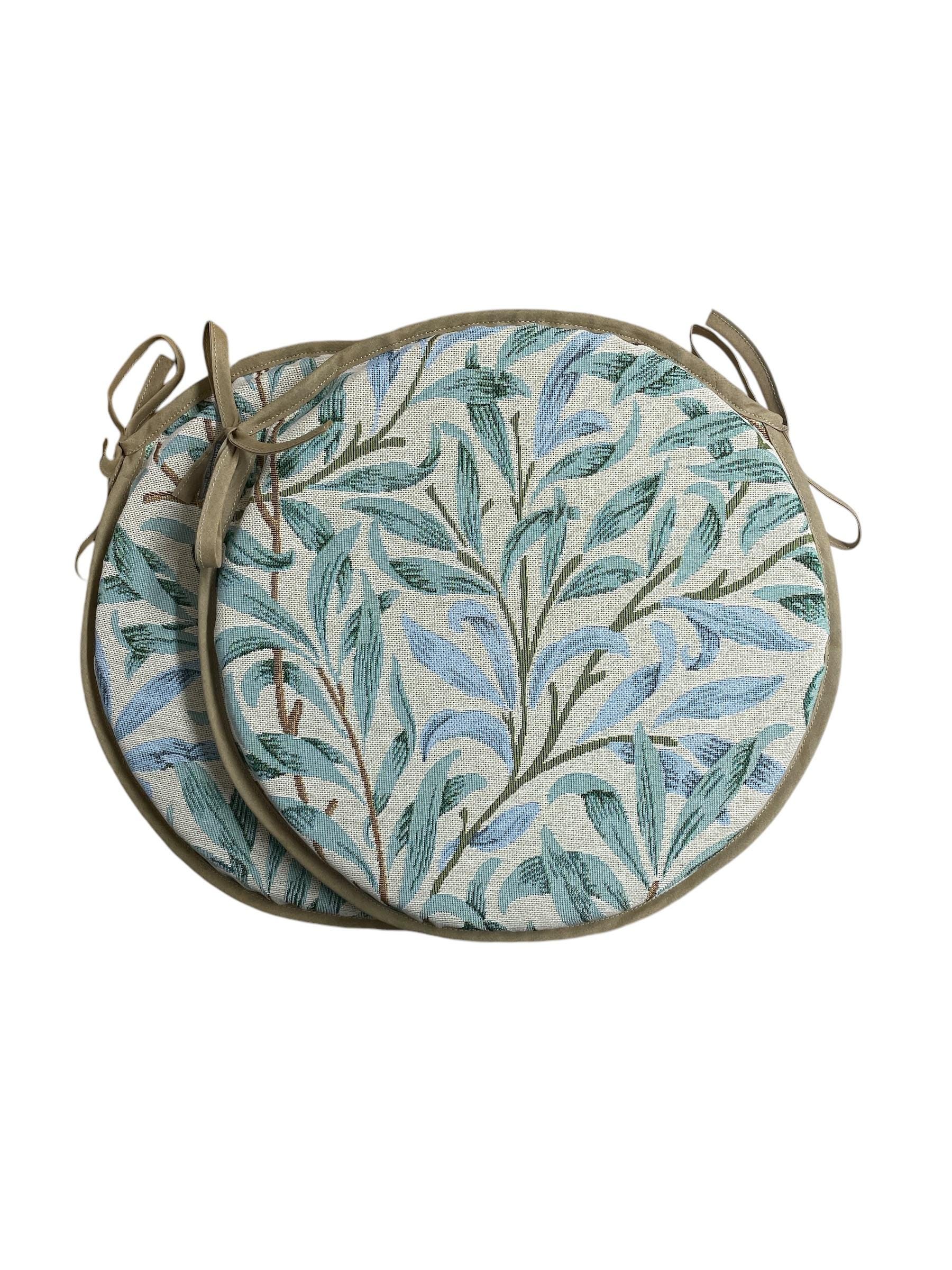 "Set Of 2 William Morris - Willow Bough Seaspray Tapestry Bistro/Round Tie-On seat pads for gar...