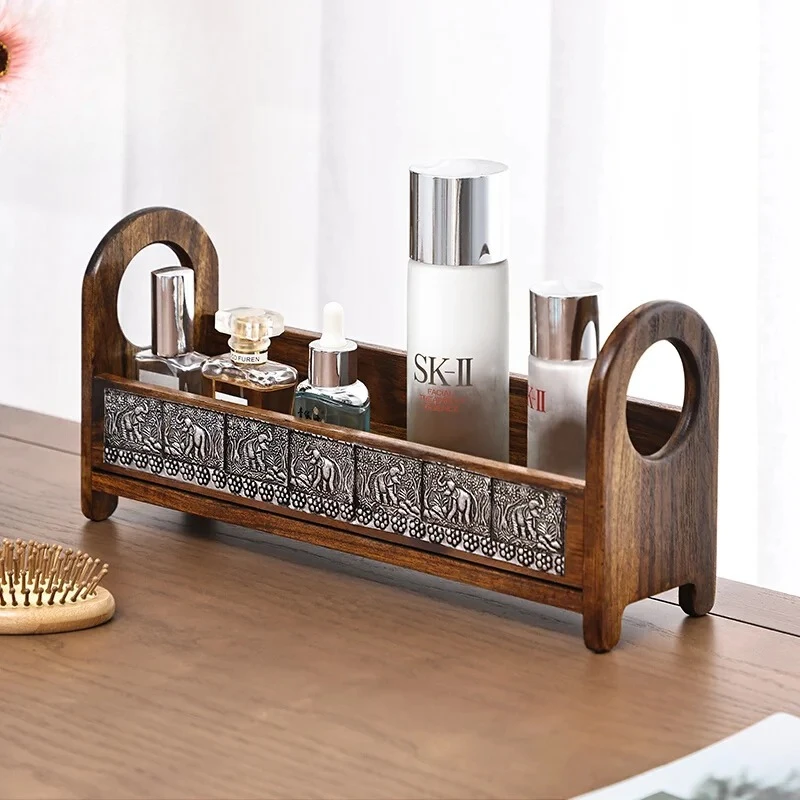 Vintage Solid Wood Vanity Organizer, Bathroom Countertop Storage Shelf, Desktop Makeup Cosmetic Box ...
