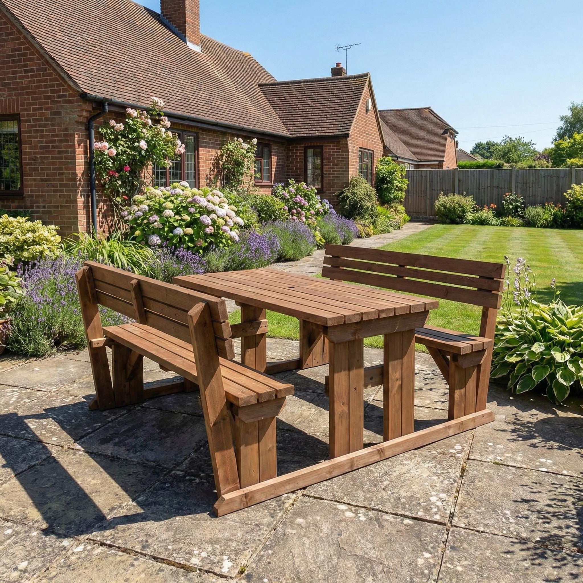 Alders Picnic Bench Set with Back-Rests - Stable Solid Wood Garden ...
