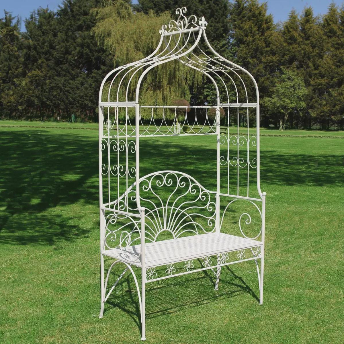 French Cream Metal Garden Arbour Bench, Patio or Lawn Outdoor Furni...