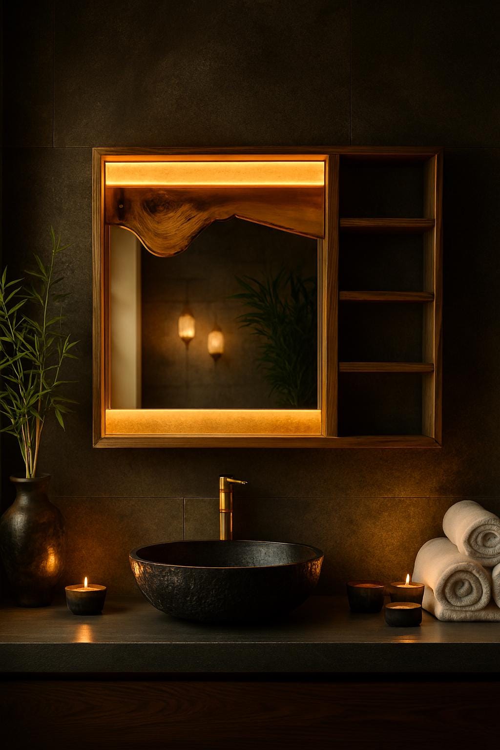 Add warmth, elegance, and functionality to your bathroom with this handcrafted wooden mirror cabinet...