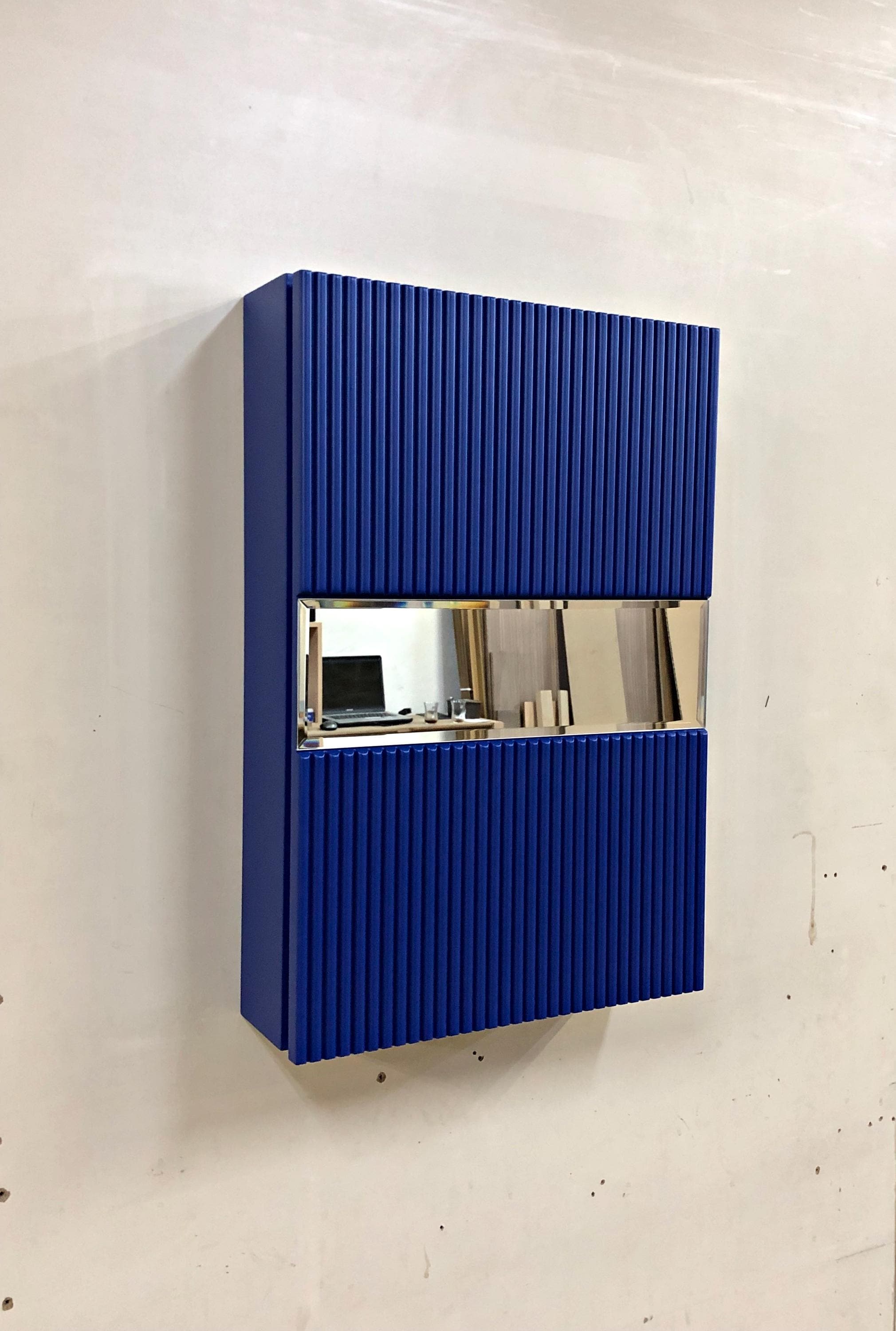"Blue Floating Bathroom Cabinet / Wooden Wall Decor / Medicine Cabinet With Mirror / Wall Art /...