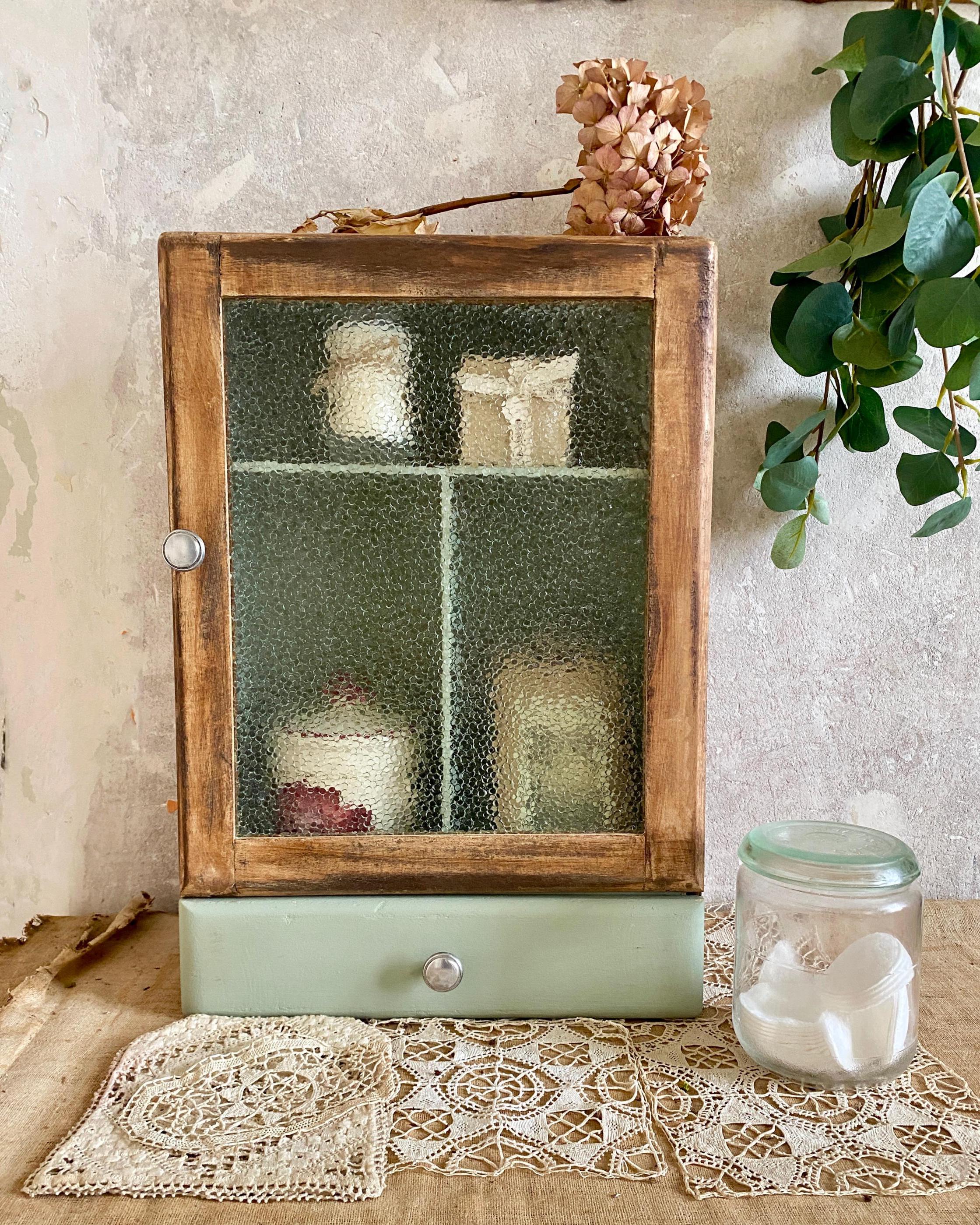 "1930's French Wooden Glass Bathroom Cabinet | Vintage Apothecary Cabinet | Wall Mounted Cupboa...