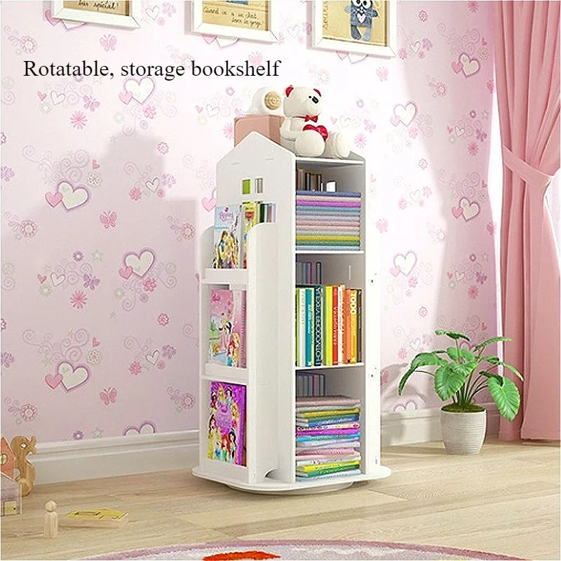 Children's Bookshelf Book Store Room Furniture Solid Wood Rotating ...