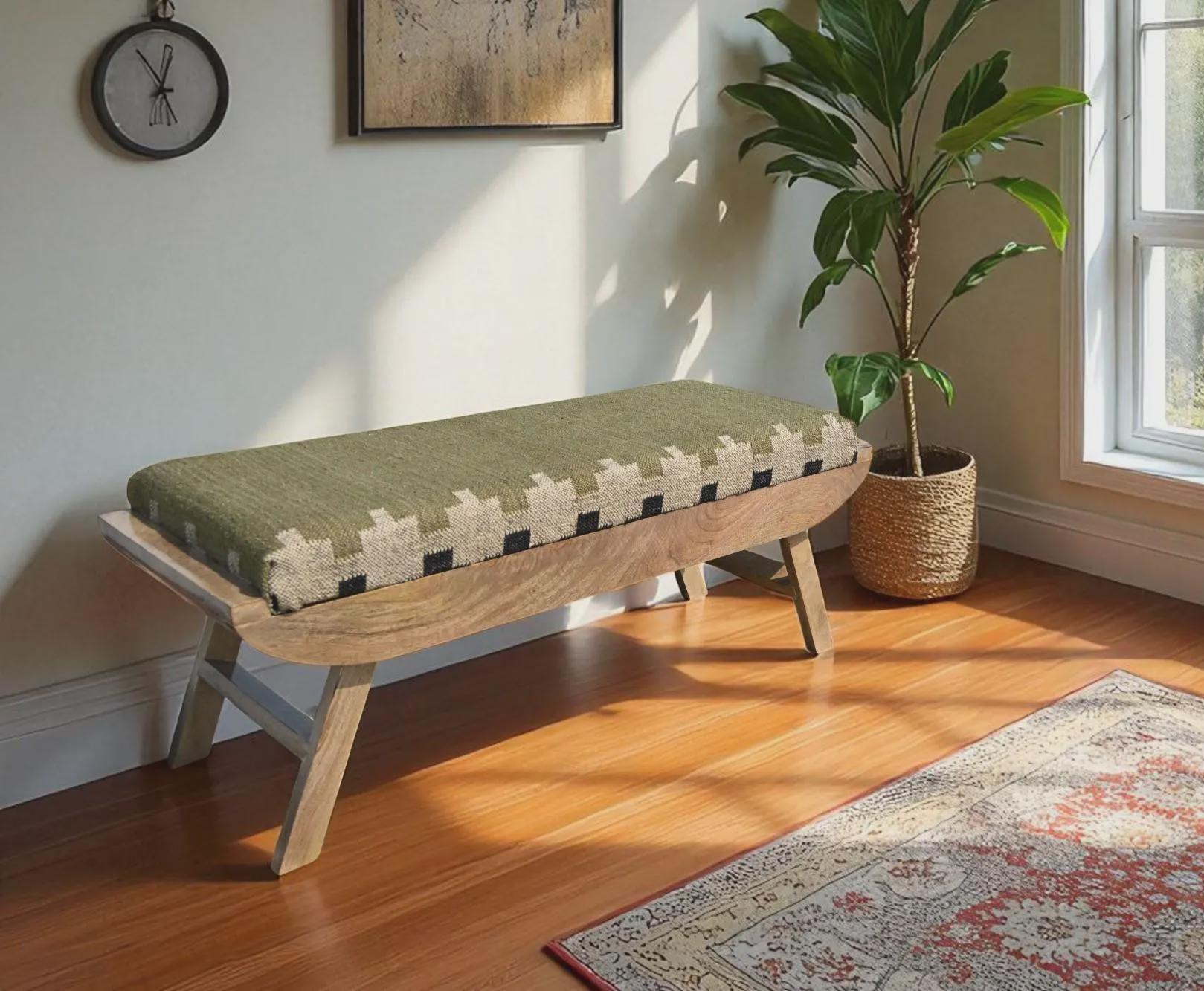 Handmade Wooden Folding Kilim Bench-Kilim Rug Wood Bench-Handwoven ...