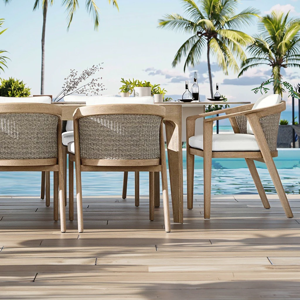 Custom Modern 6-Seater Teak Wood Dining Table Set Outdoor Patio Fur...