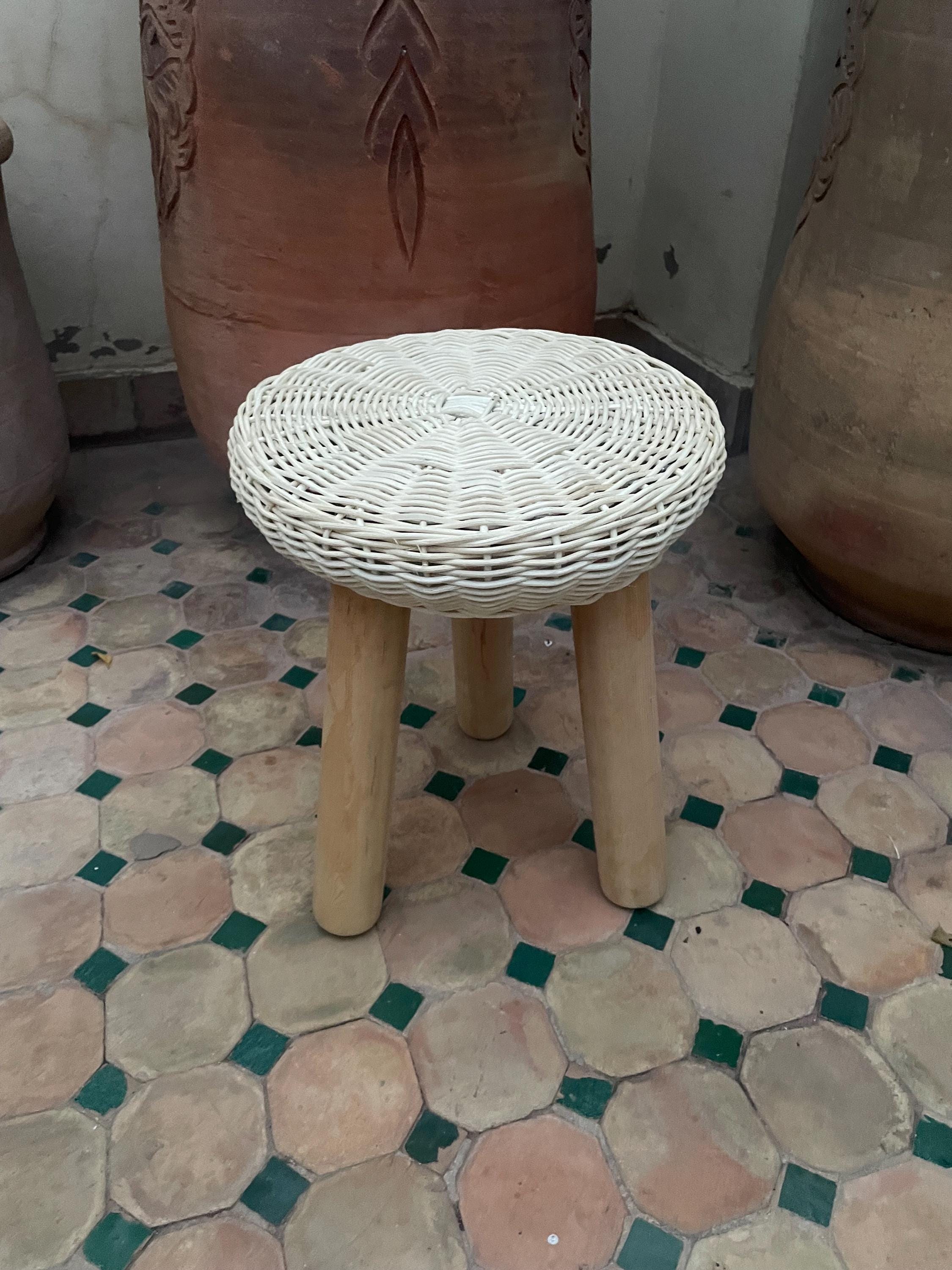 Handmade Rattan Stool with Wooden Legs | Moroccan Boho Accent Stool...