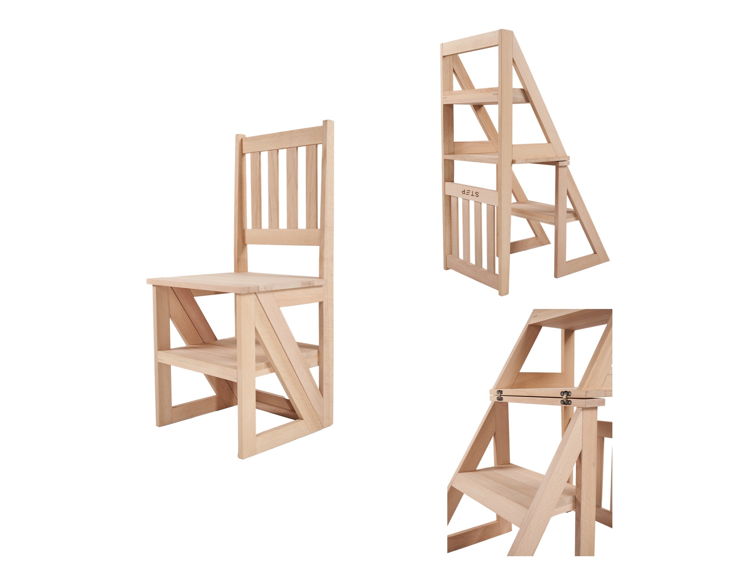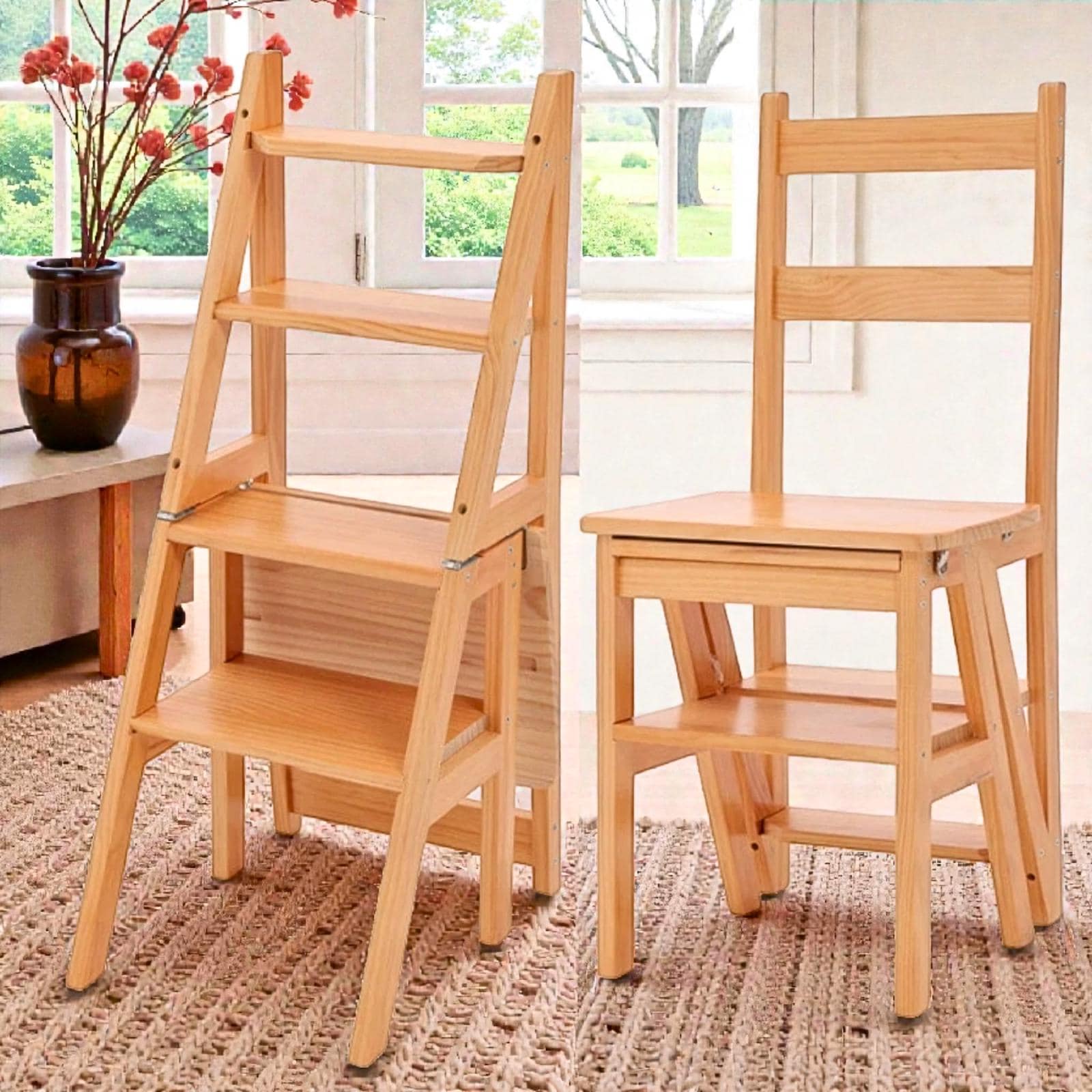 Solid Wood Convertible Ladder Chair - Folding Step Stool & Chair in One Upgrade your home with t...