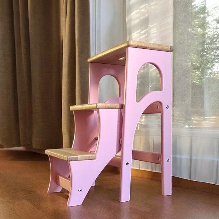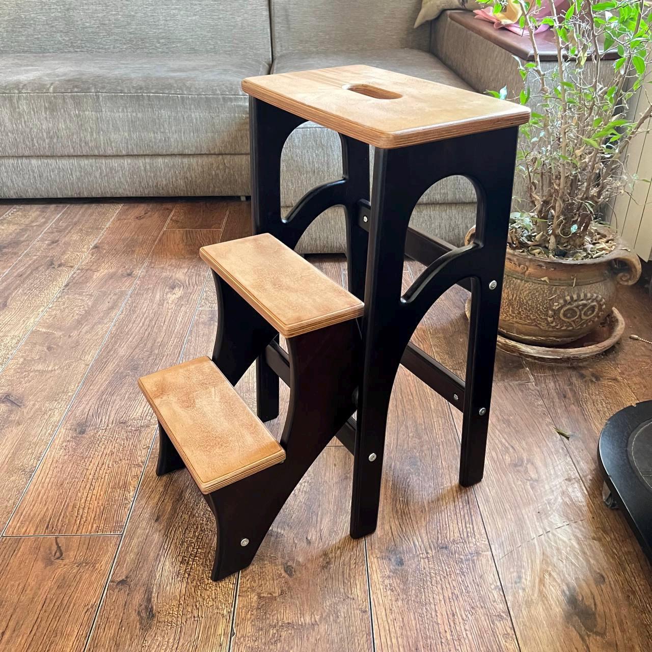 Our wooden stepladder is compact, comfortable, functional and unique, as it is 100% handcrafted! Fol...