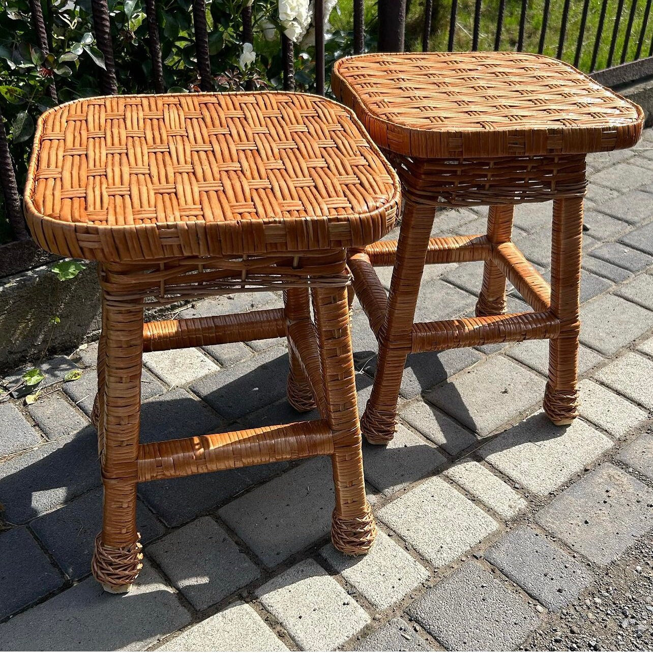 wicker stool, rustic stool, small wooden stool, wooden stool, woven...