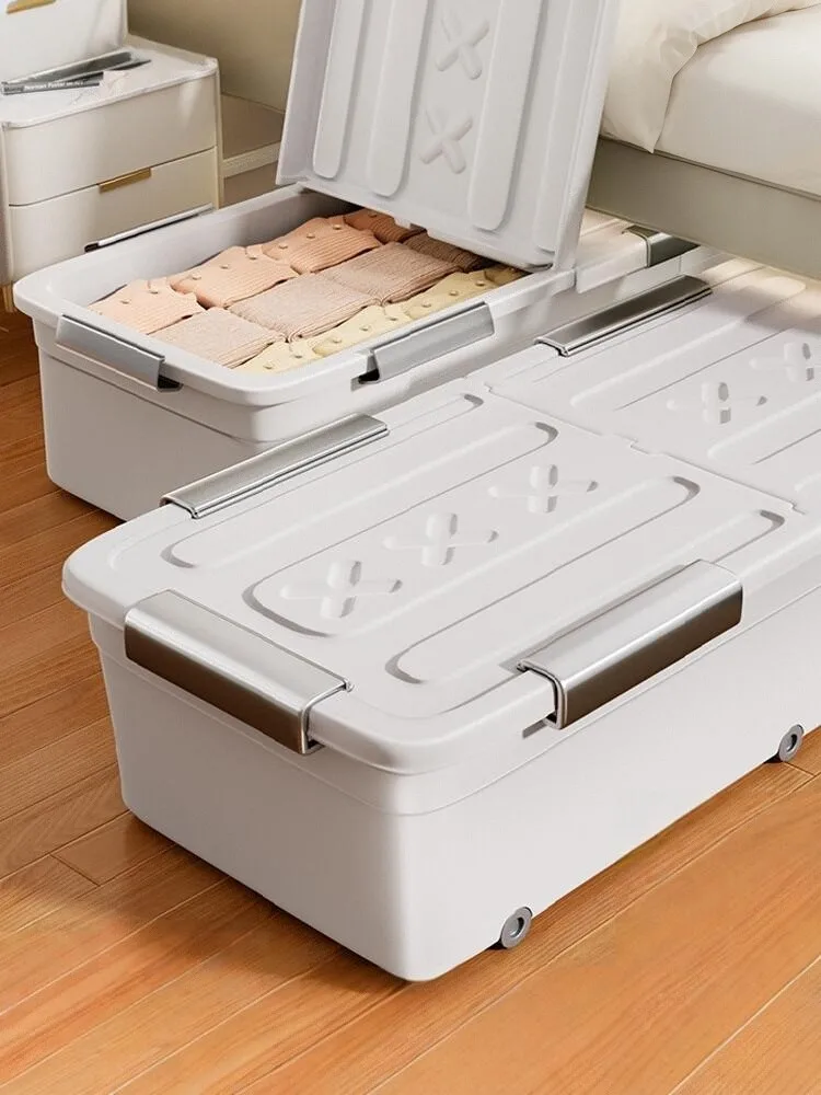 Underbed Storage Box with Wheels Large Capacity Pull out Cabinet Flat Design Book Storage Box Dormit...
